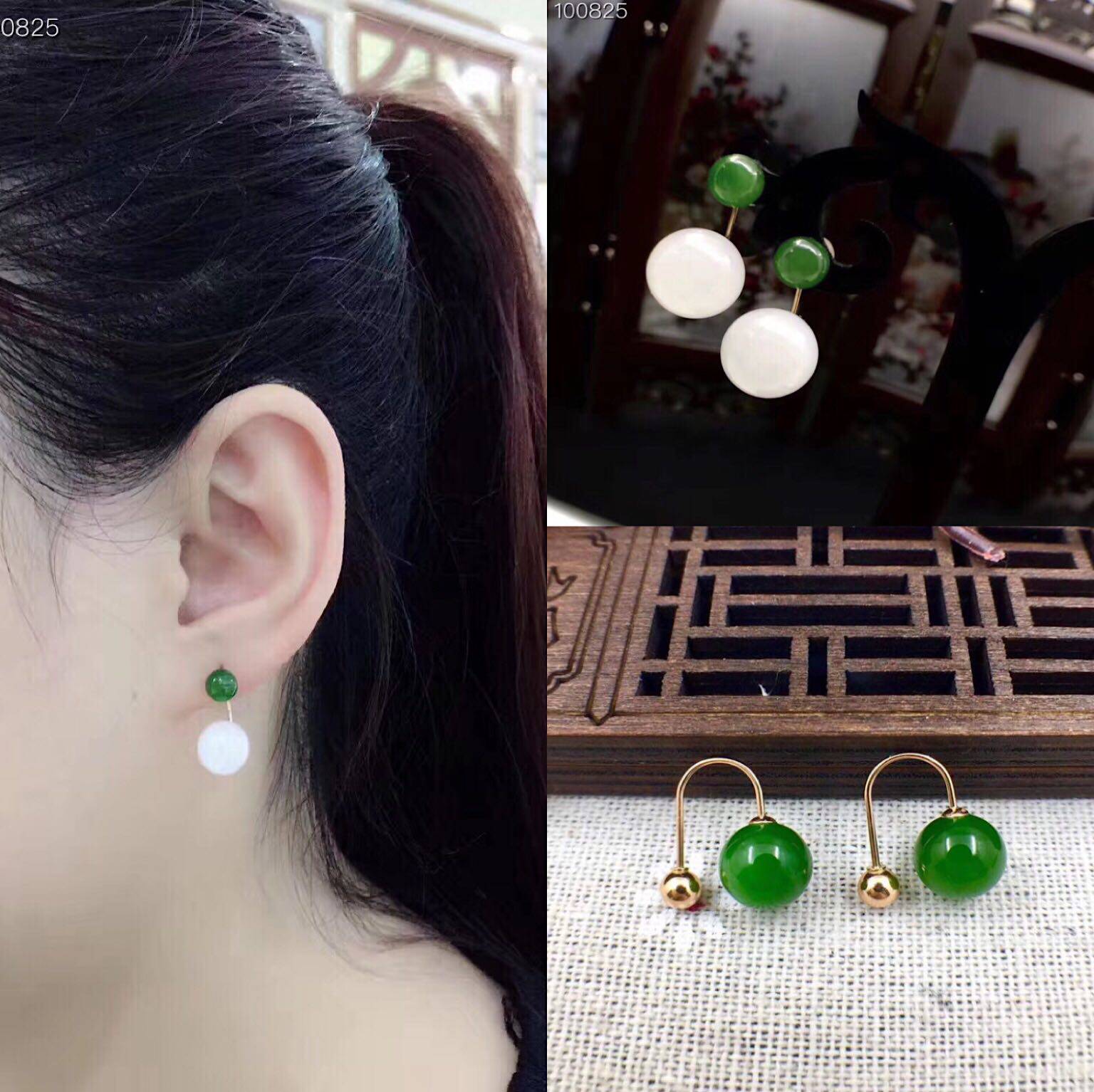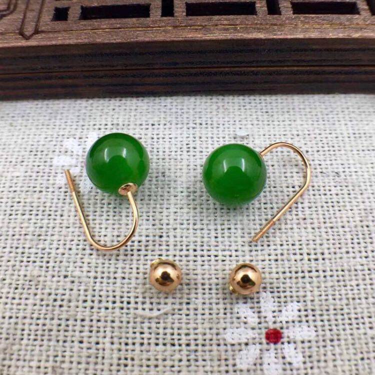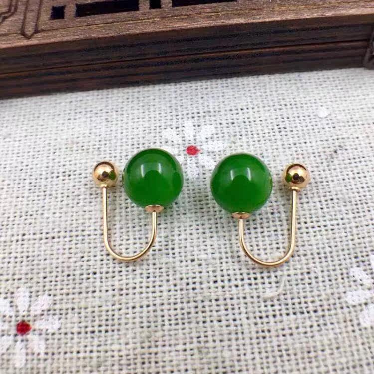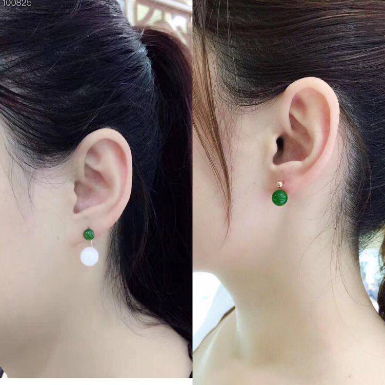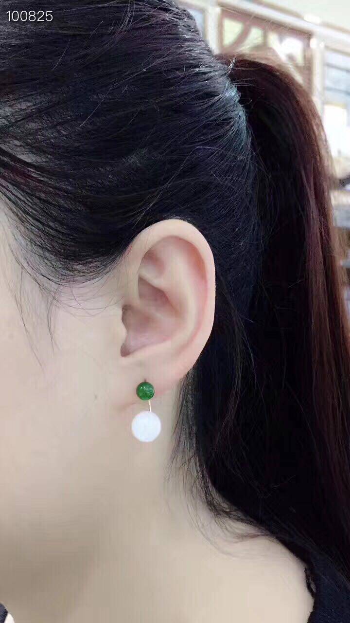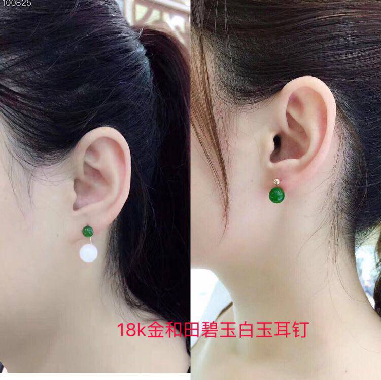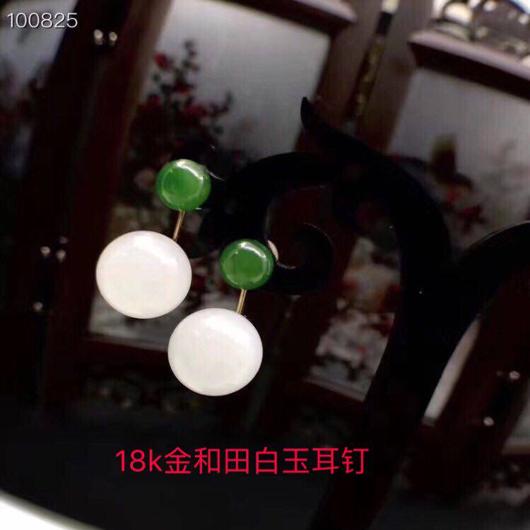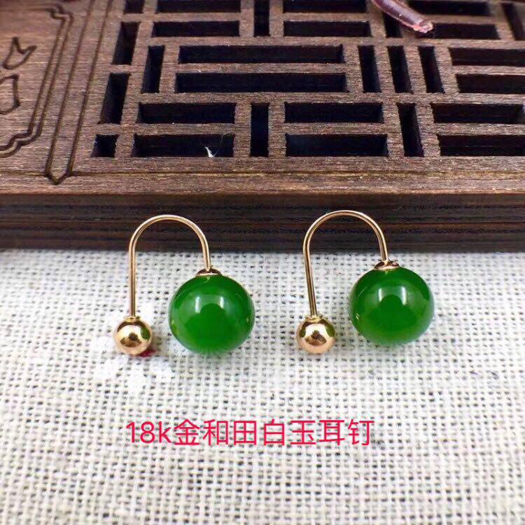 Яшма из округа Хотан из белого нефрита, изумрудные серьги из нефрита, золото 750 пробы