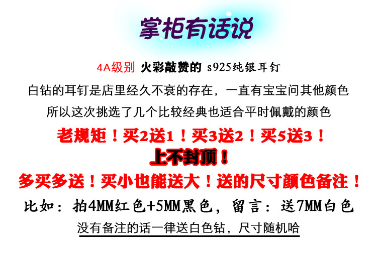 | Цвет: | [白色钻(3mm)一对 (迷你)1#], [黑色钻(3mm)一对 (迷你)2#], [石榴红钻(3mm)一对 (迷你)3#], Маленький, цвета шампанского, 3mm, [紫色钻(3mm)一对 (迷你)5#], [白色钻(4mm)一对 (很小)6#], [黑色钻(4mm)一对 (很小)7#], [石榴红钻(4mm)一对 (很小)8#], [香槟色钻(4mm)一对 (很小)9#], [紫色钻(4mm)一对 (很小)10#], [白色钻(5mm)一对 (适中)11#], [黑色钻(5mm)一对 (适中)12#], [石榴红钻(5mm)一对 (适中)13#], [香槟色钻(5mm)一对 (适中)14#], [紫色钻(5mm)一对 (适中)15#], [白色钻(6mm)一对 (推荐)16#], [黑色钻(6mm)一对 (推荐)17#], [石榴红钻(6mm)一对 (推荐)18#], [香槟色钻(6mm)一对 (推荐)19#], [紫色钻(6mm)一对 (推荐)20#], [白色钻(7mm)一对 (推荐)21#], [黑色钻(7mm)一对 (推荐)22#], [石榴红钻(7mm)一对 (推荐)23#], [香槟色钻(7mm)一对 (推荐)24#], [紫色 7mm一对推荐 25#], [白色 8mm推荐男生 26#], [黑色 8mm推荐男生 27#], [红色 8mm一对推荐 28#], [香槟色 8mm推荐男生 29#], [深紫色 8mm一对推荐 30#] |