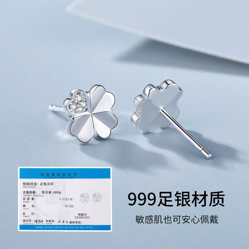 Маленькие изысканные летние серьги, серебро 999 пробы, четырехлистный клевер, 2021 года, изысканный стиль