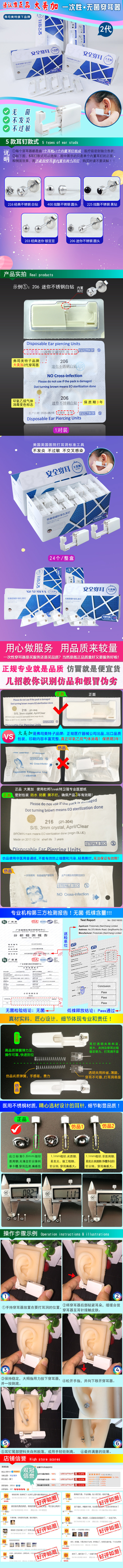 弗司美特 Настоящее одноразовое безболезненное устройство для пирсинга ушей Dameijia, серьги из стерлингового серебра 2-го поколения