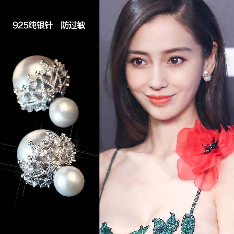 Южнокорейский товар, модные двусторонние серьги из жемчуга, серебро 925 пробы