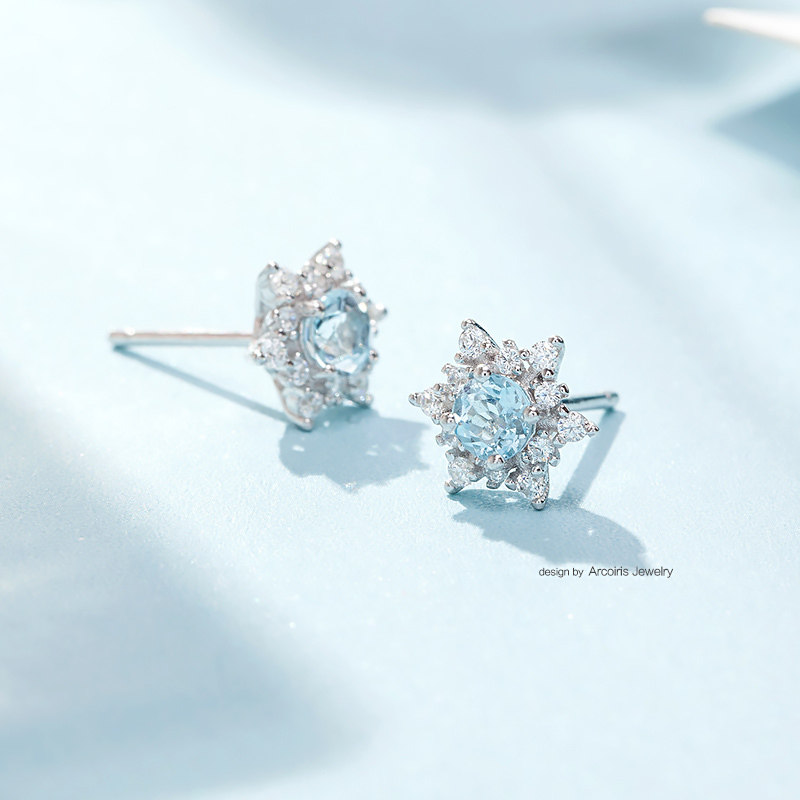 Сапфировые оригинальные короткие серьги, серебро 925 пробы, со снежинками, простой и элегантный дизайн