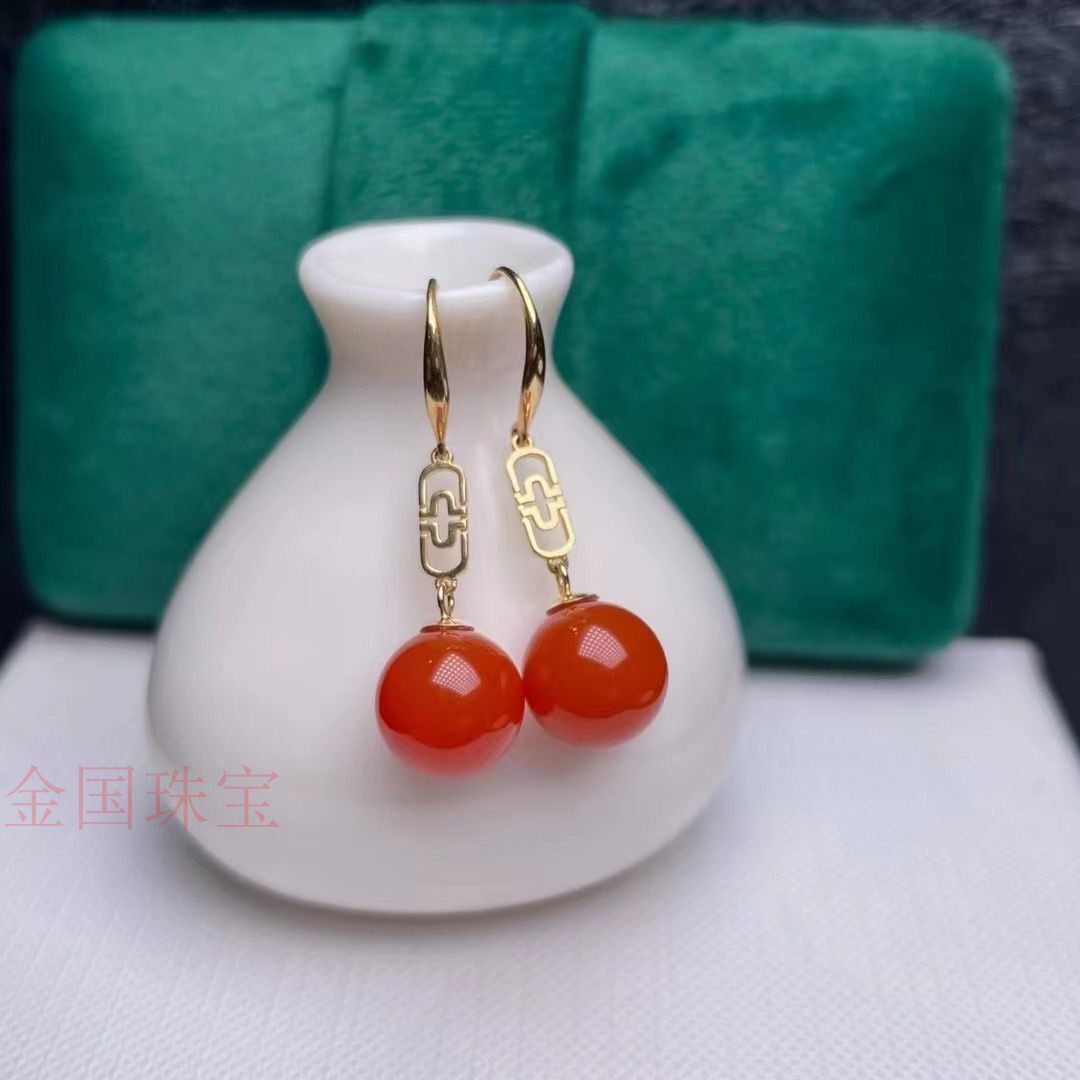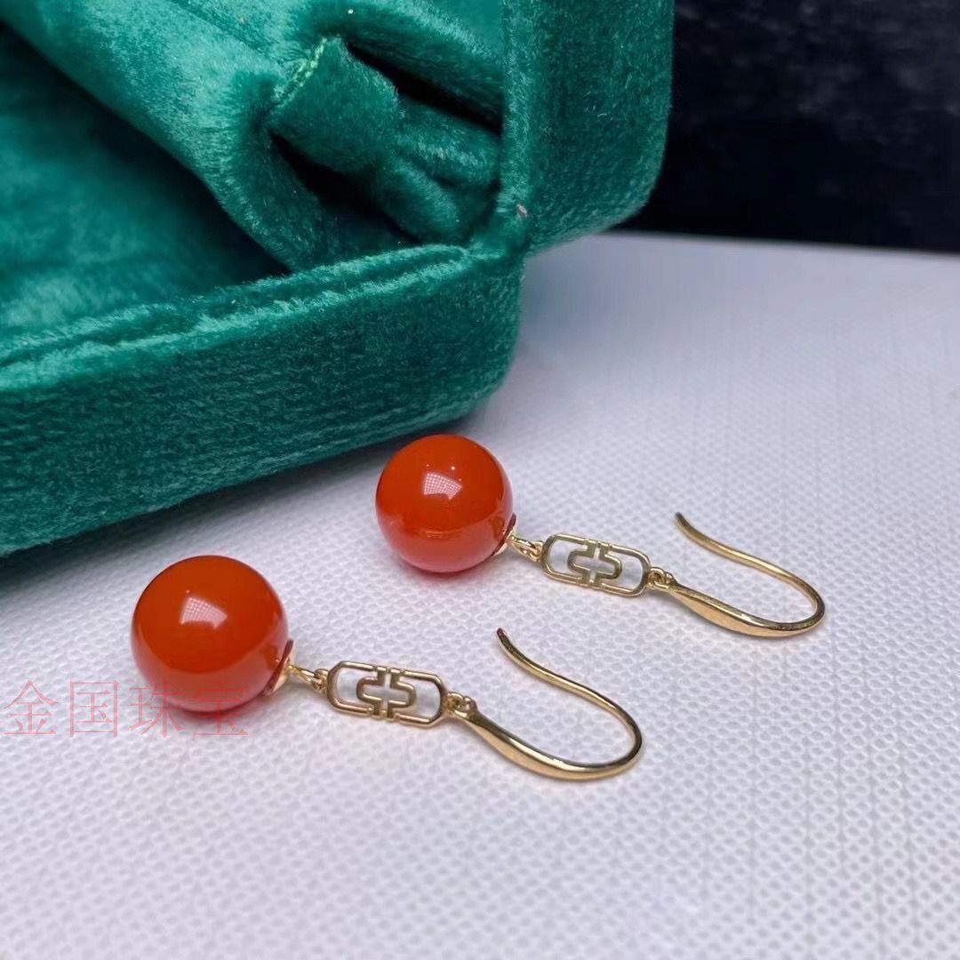 Натуральные красные вишнево-красные рубиновые модные универсальные серьги, золото 18 карат