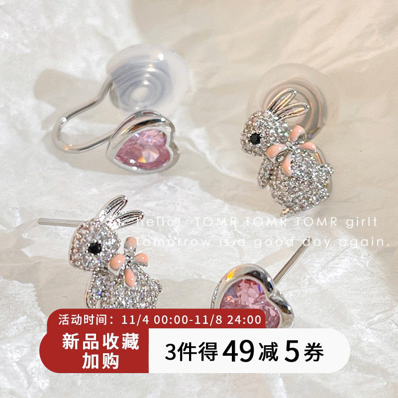 Асимметричный кролик, серьги с цирконом, милая спираль от комаров, клипсы, микроинкрустация, коллекция 2023, новая коллекция
