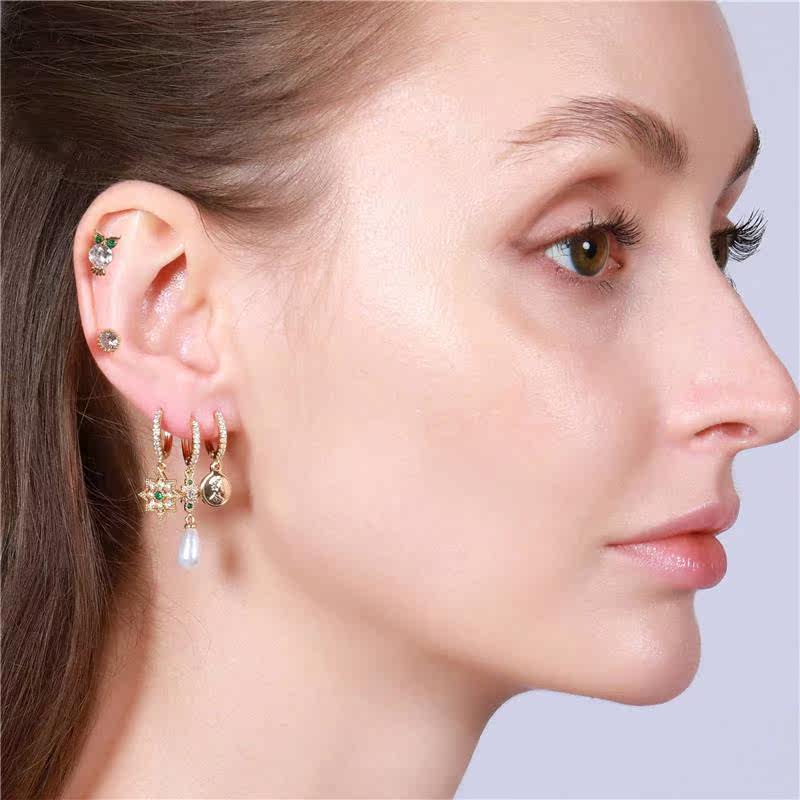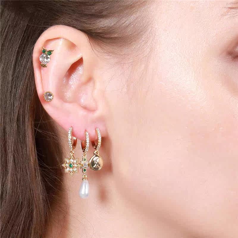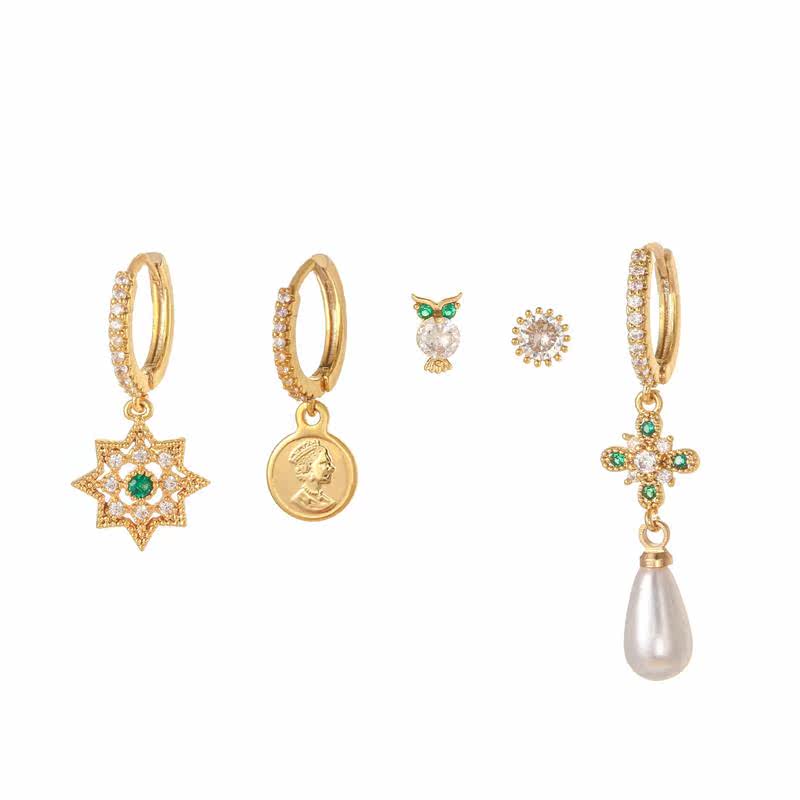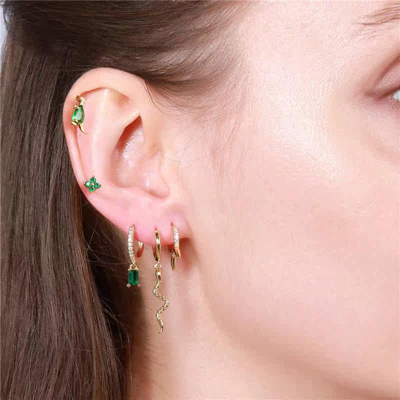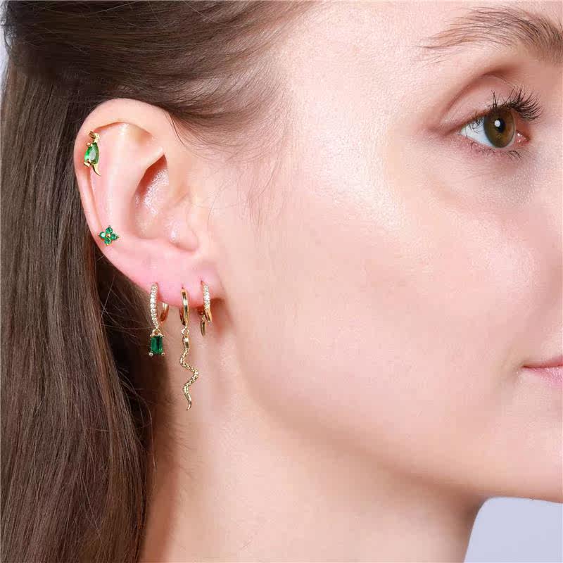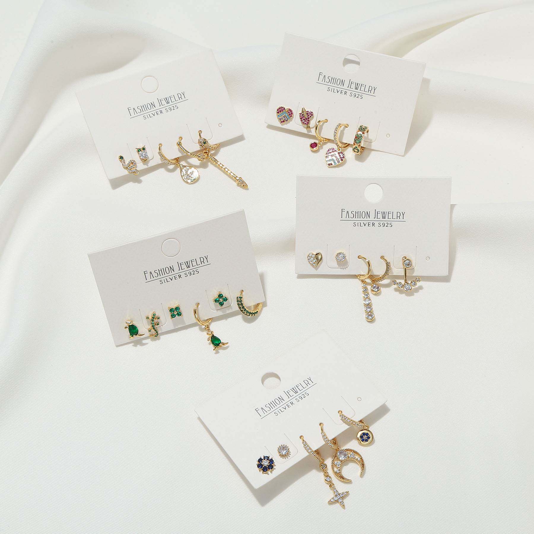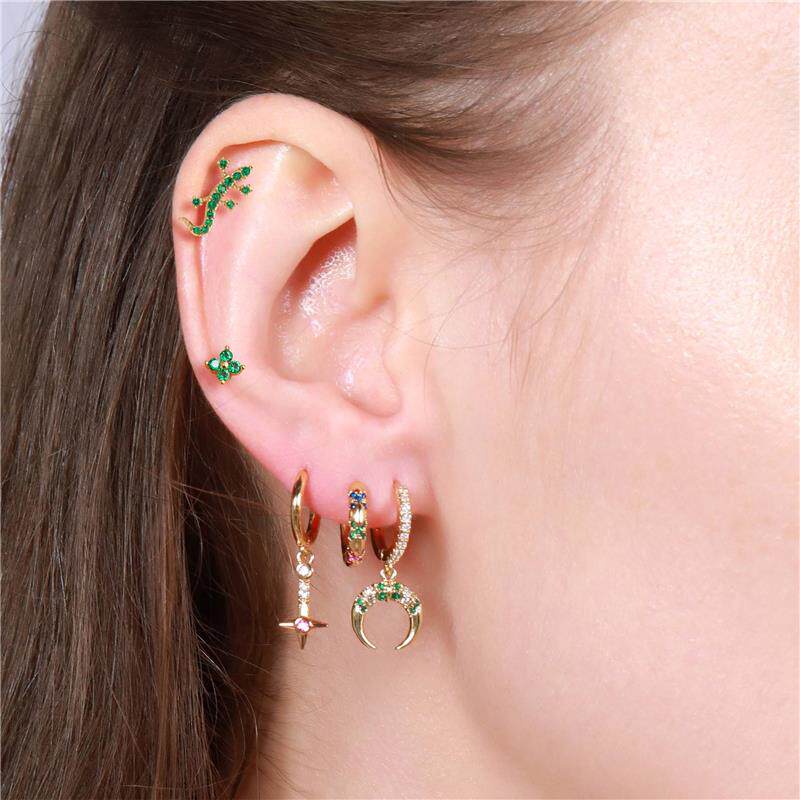 Комплект серег из латуни с зеленым цирконом, геккон, сова, маленький динозавр