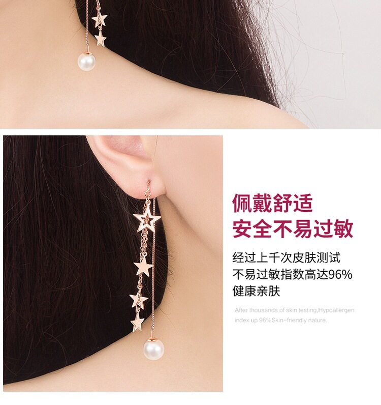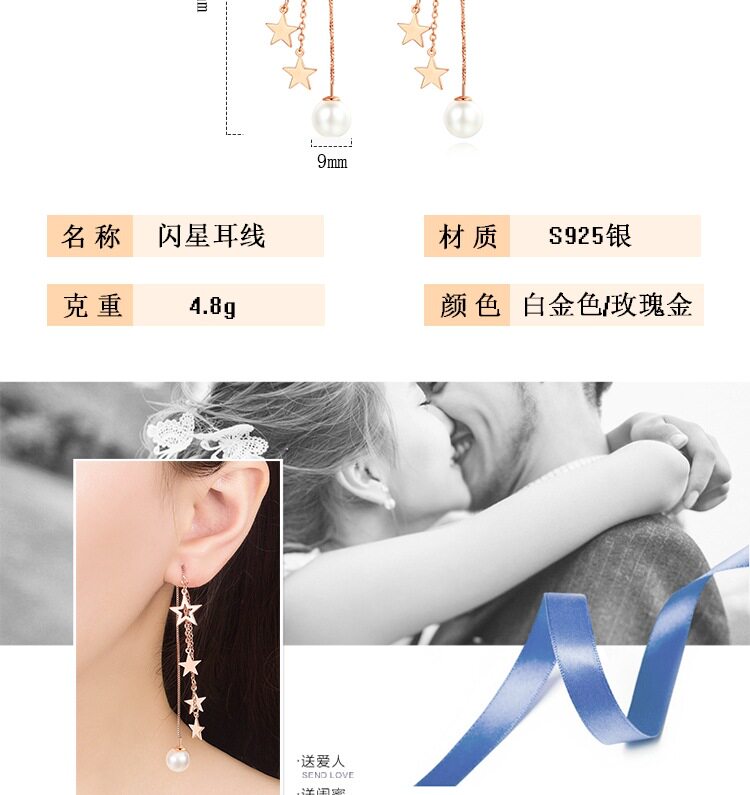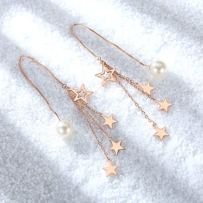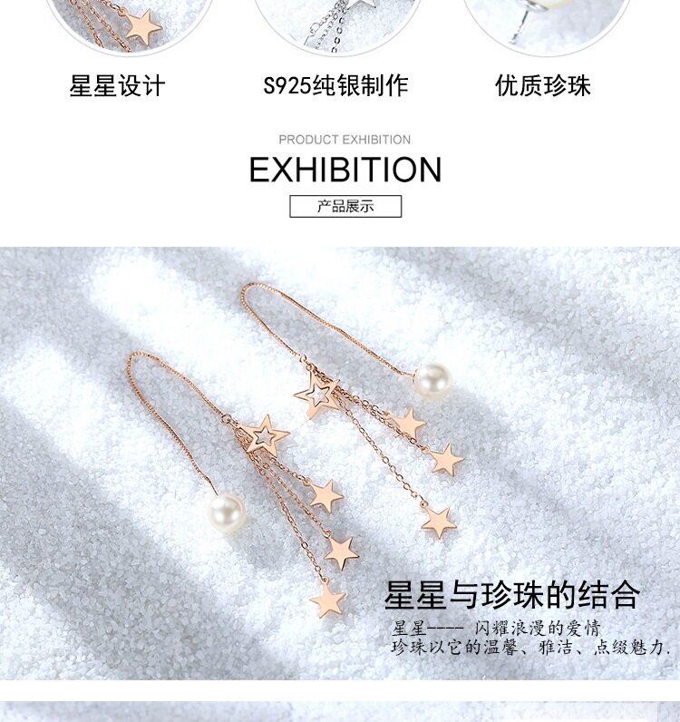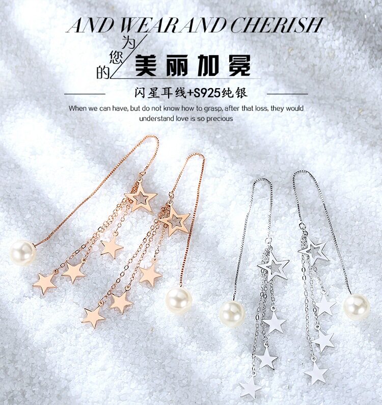 Длинные золотые серьги с кисточками, серебро 925 пробы, длина макси, розовое золото, простой и элегантный дизайн