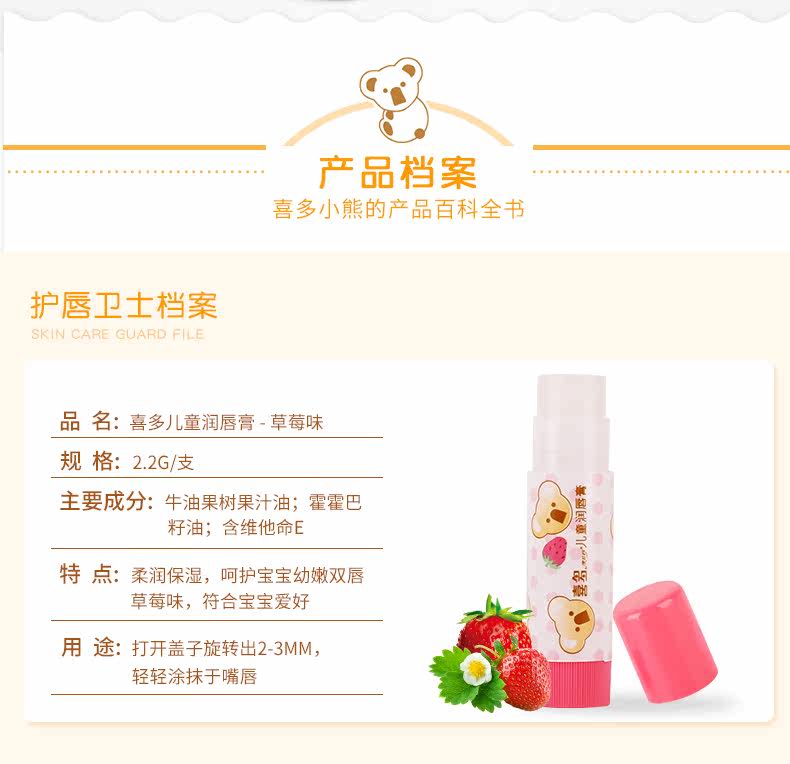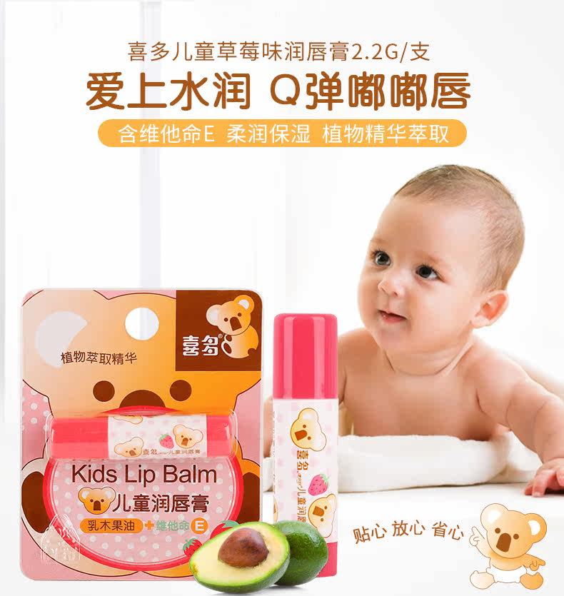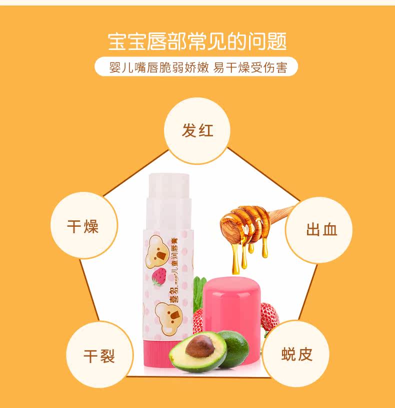 Детский увлажняющий бальзам для губ, клубника, помада