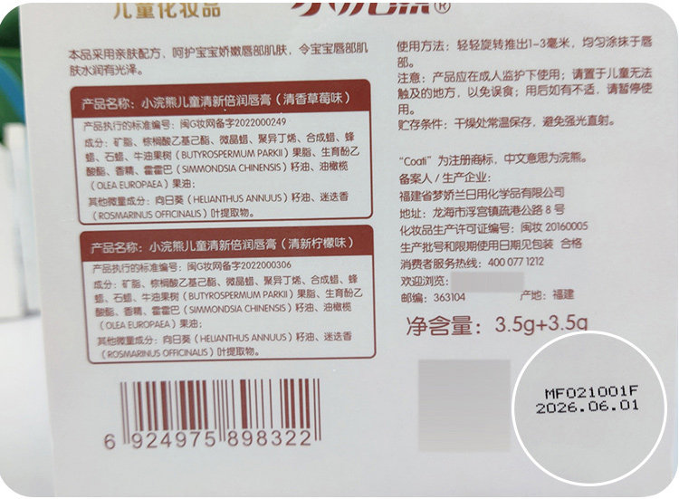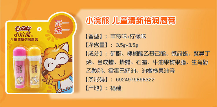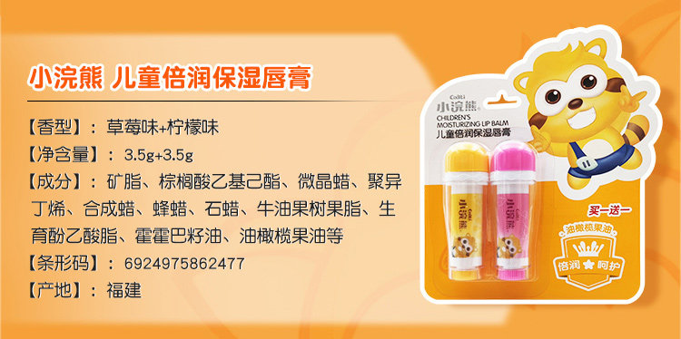 Детский увлажняющий бальзам для губ, детская питательная помада, 3.5г, 2 шт, фруктовый вкус