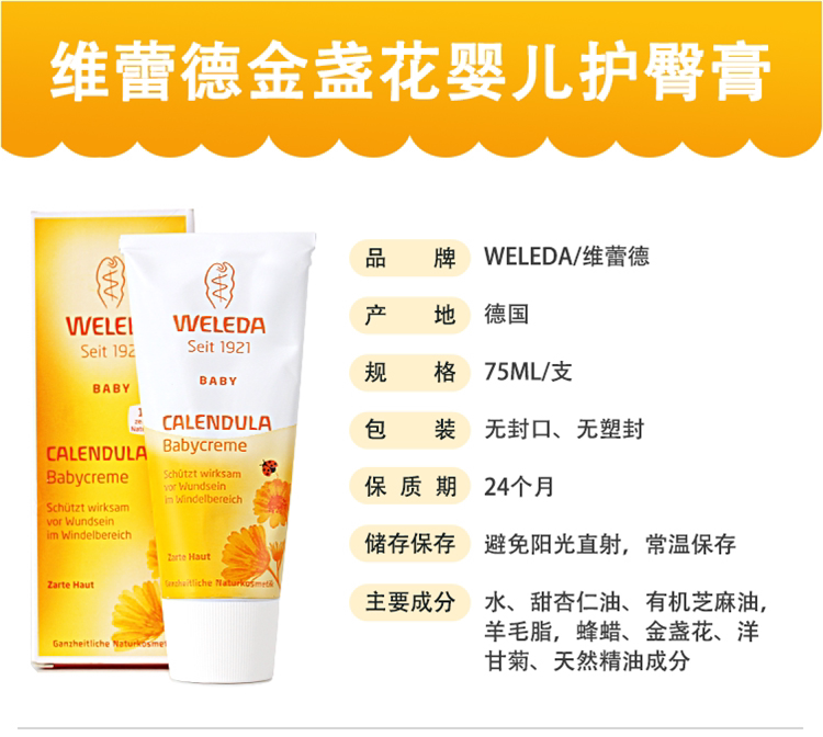 Weleda, импортный детский крем c календулой, Германия, 75 мл