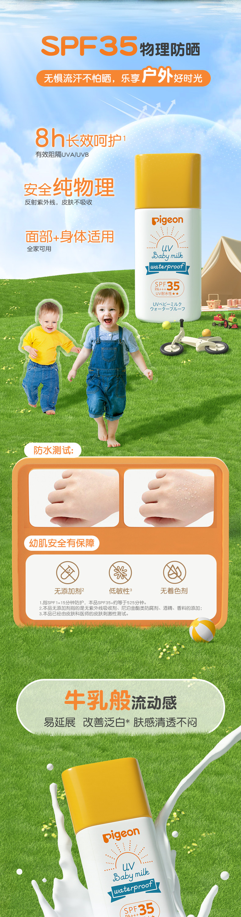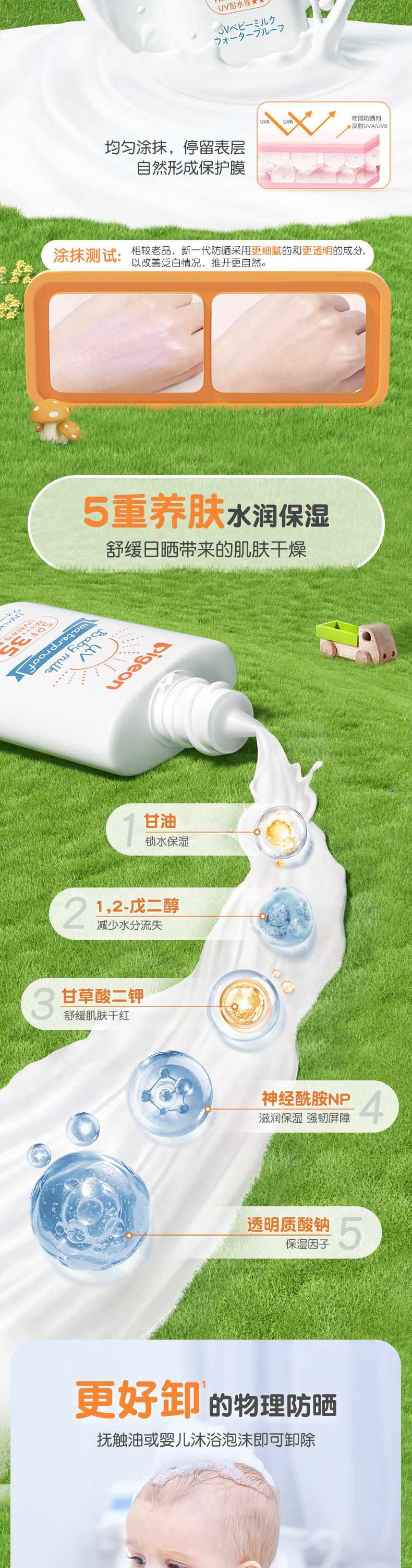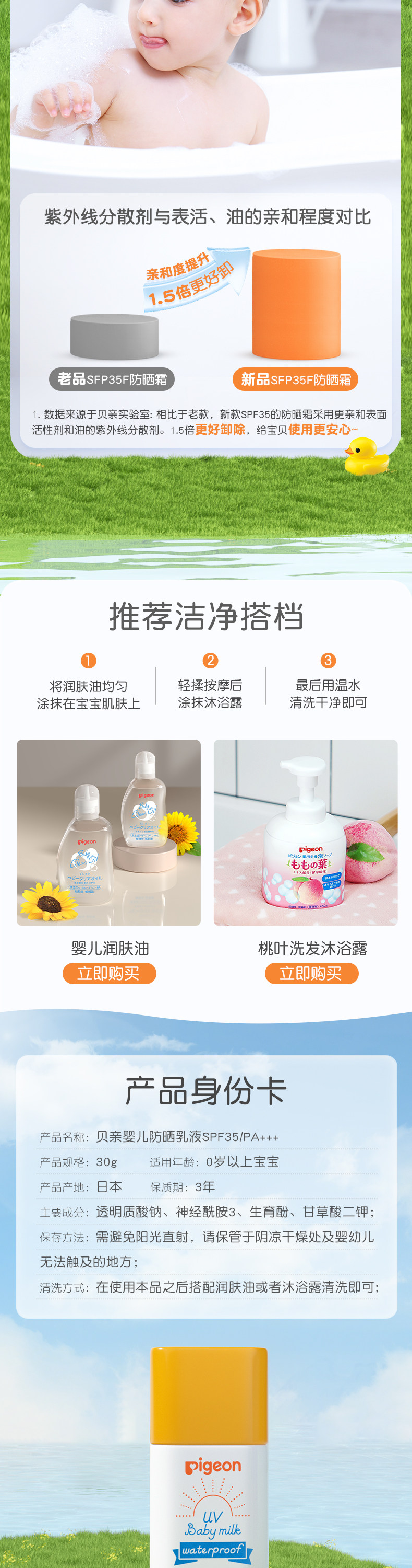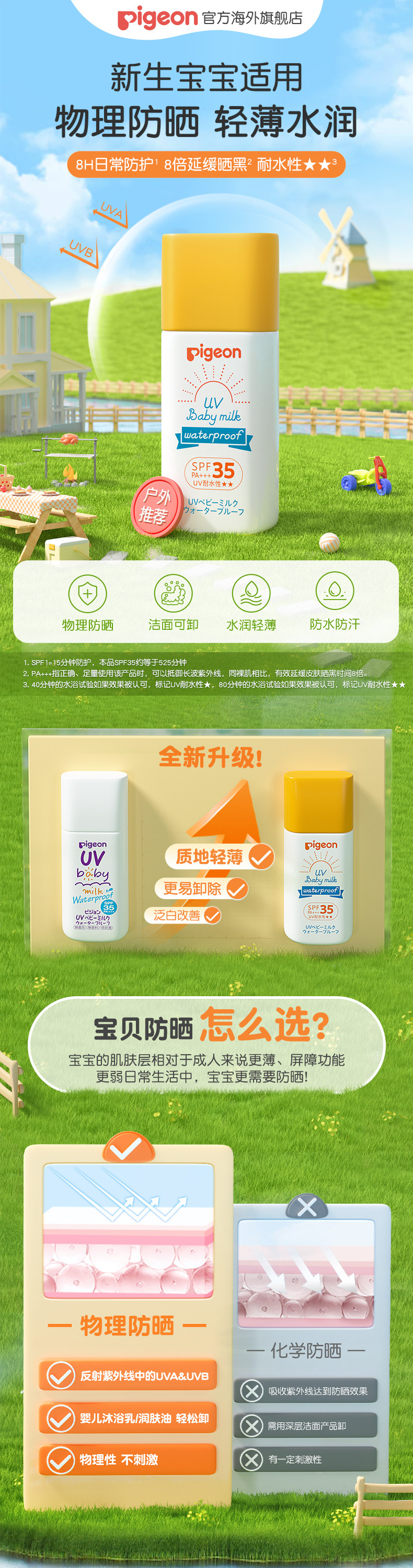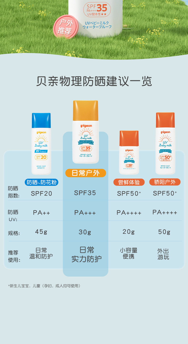Pigeon, детский легкий и тонкий солнцезащитный крем для новорожденных, SPF35, физическая защита, 30г