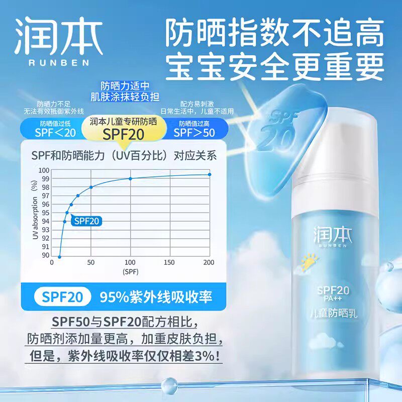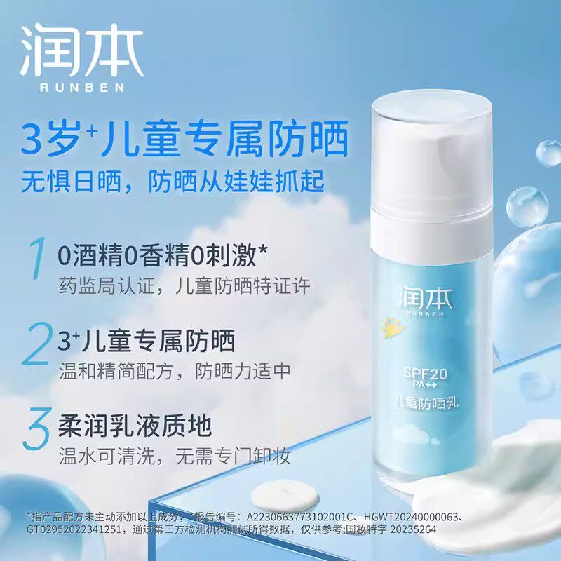 润本 Детский освежающий солнцезащитный крем для чувствительной кожи, УФ-защита, физическая защита