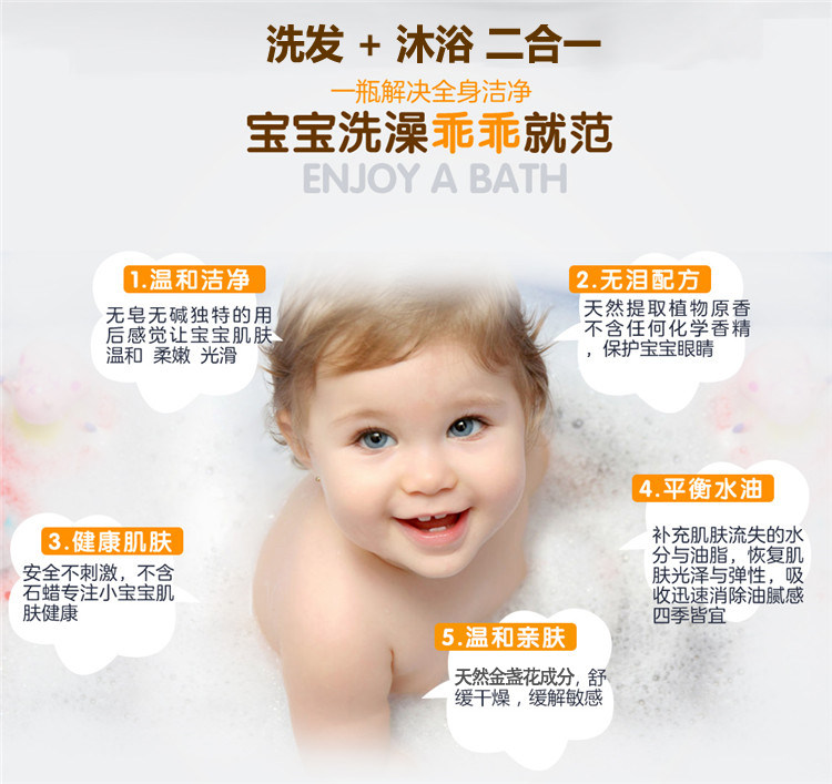 Детское средство детской гигиены c календулой, шампунь, гель для душа для новорожденных, Германия, 2 в 1