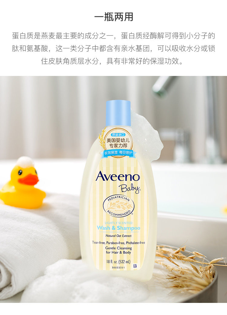Aveeno/艾惟诺 Детский шампунь, питательный гель для душа, двойная защита, 532 мл