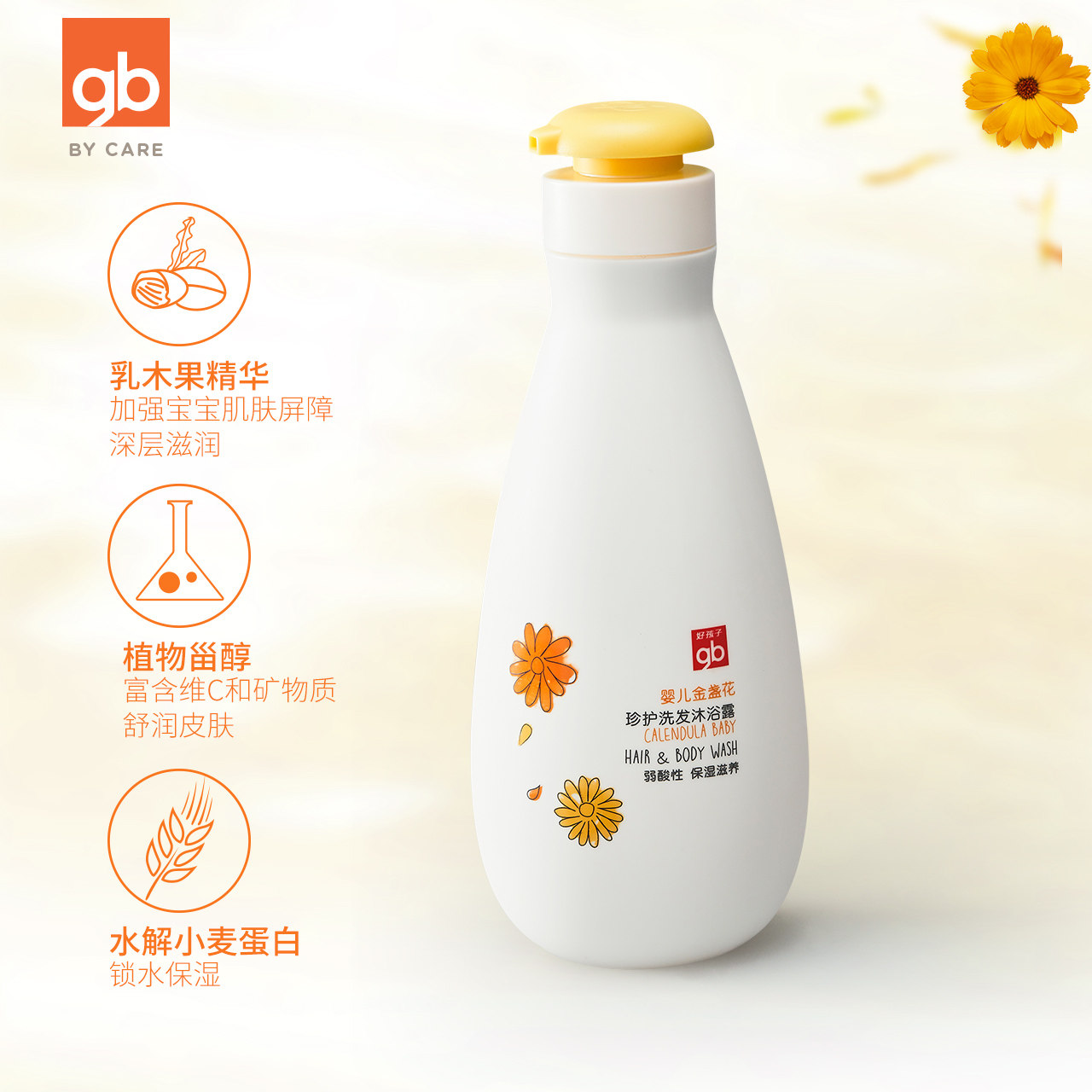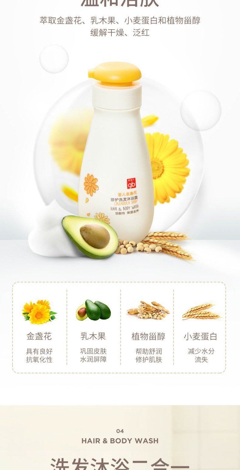 Детский шампунь c календулой для новорожденных, гель для душа, 2 в 1, 400 мл