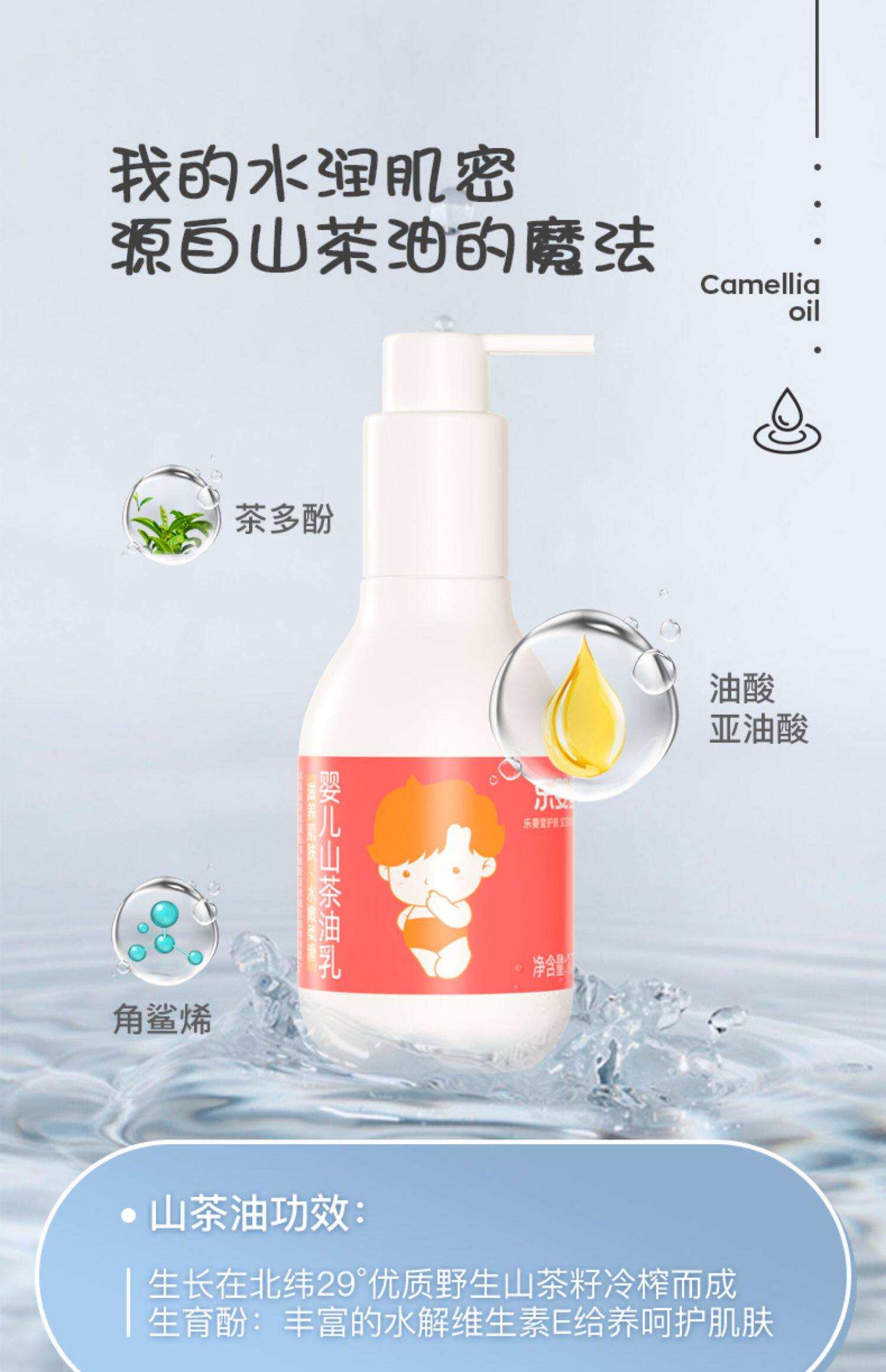 乐婴堂 Детский горный чай для ухода за кожей, питательное увлажняющее масло камелии для новорожденных, питательный крем для тела