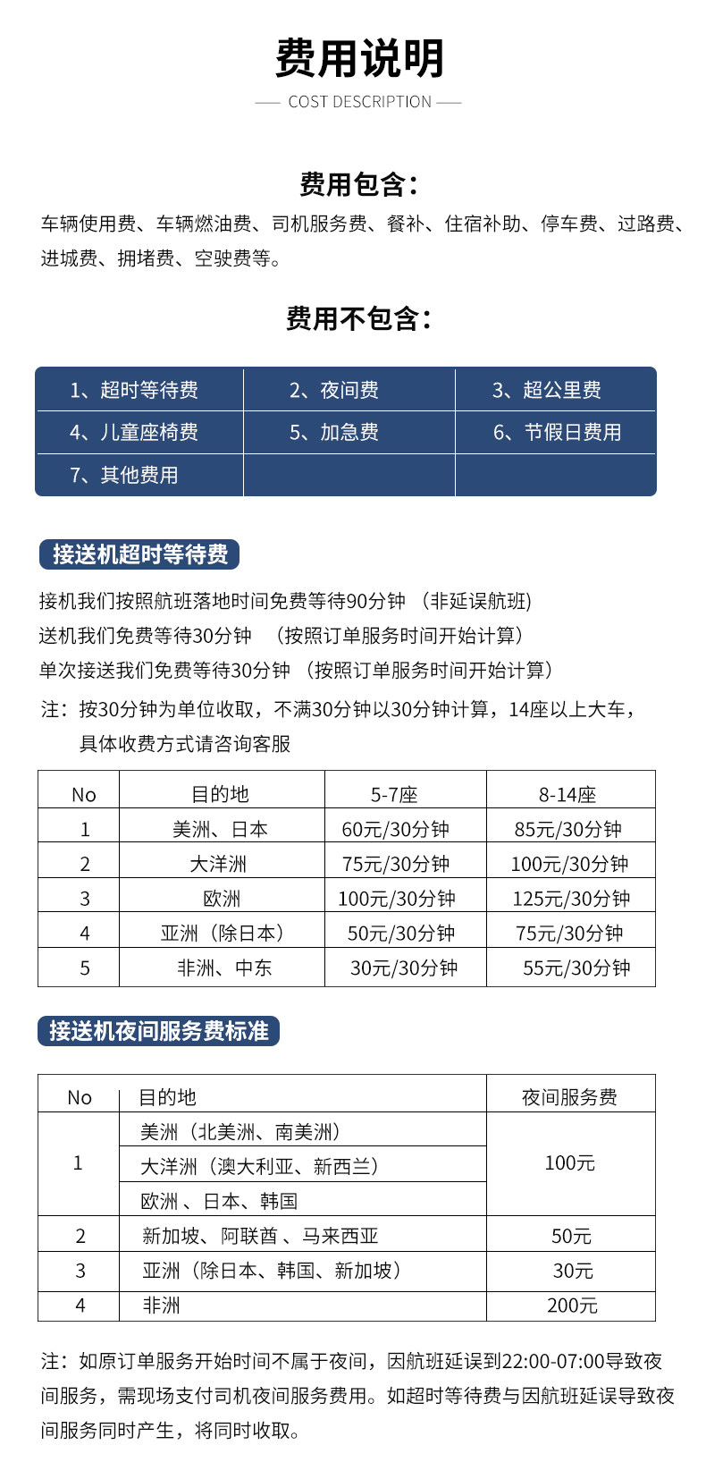 5. Если вы пользуетесь автомобилем с 22:00 по местному времени до 07:00 следующего дня, водитель будет работать сверхурочно и взимается плата за ночное обслуживание.По умолчанию в стоимость обслуживания клиентов не включена плата за ночное обслуживание.