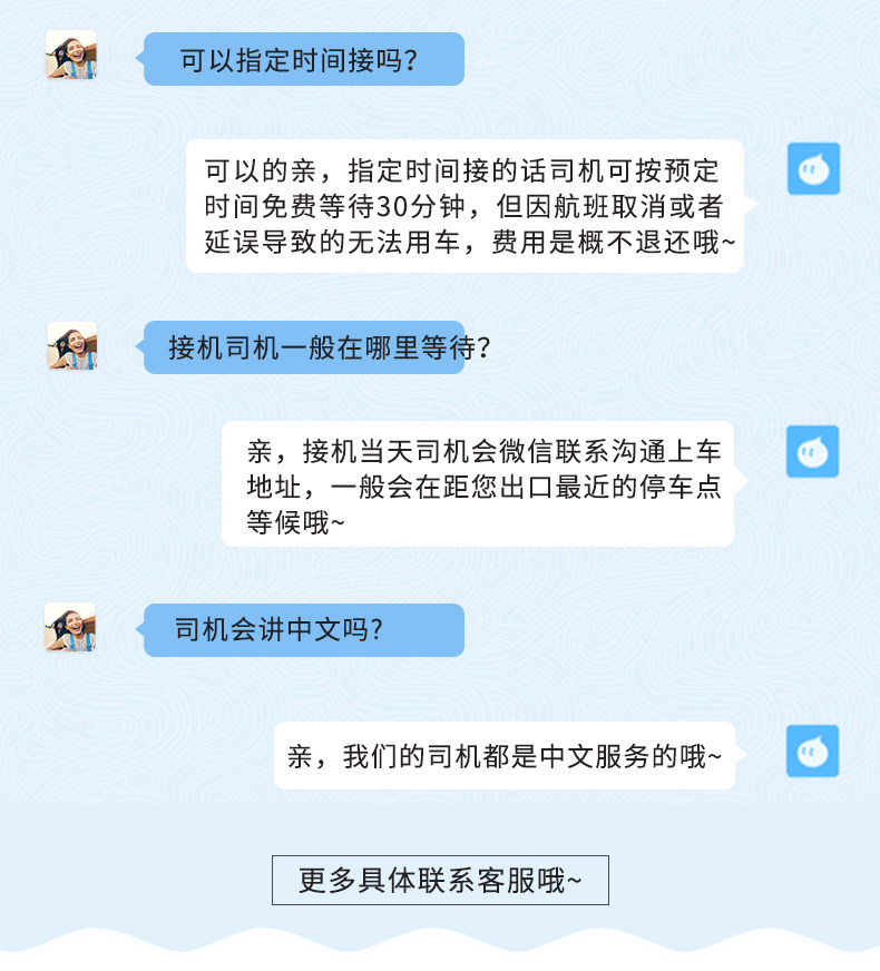 13. Если ваш рейс задерживается, пожалуйста, своевременно свяжитесь со службой поддержки клиентов.Если воспользоваться автосервисом первоначального заказа невозможно из-за задержки или отмены первого этапа стыковочного рейса, заказ не может быть отменен или изменен.Если рейс прибывает нормально или задерживается на 2 часа, водитель будет ждать бесплатно 90 минут в зависимости от времени приземления рейса. Если рейс прибывает раньше, водитель заберет вас не позднее указанного в заказе времени.Если рейс задерживается более чем на 2 часа, он будет перенесен для вас в зависимости от реальной ситуации. Если водителя невозможно перенести, заказ будет отменен без потерь.Если вы превысите лимит времени или прибудете ночью из-за задержки рейса, пожалуйста, оплатите водителю сверхурочную работу и плату за ночное обслуживание лично.