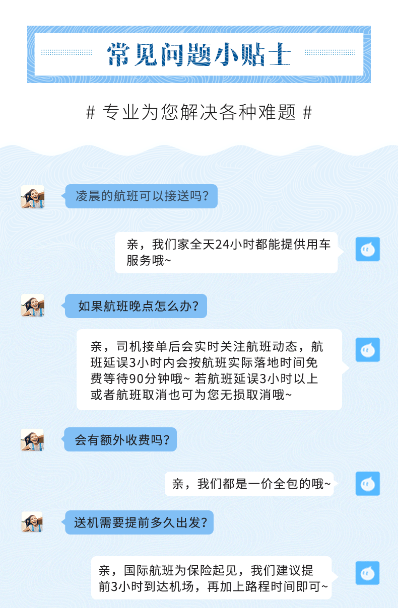 13. Если ваш рейс задерживается, пожалуйста, своевременно свяжитесь со службой поддержки клиентов.Если воспользоваться автосервисом первоначального заказа невозможно из-за задержки или отмены первого этапа стыковочного рейса, заказ не может быть отменен или изменен.Если рейс прибывает нормально или задерживается на 2 часа, водитель будет ждать бесплатно 90 минут в зависимости от времени приземления рейса. Если рейс прибывает раньше, водитель заберет вас не позднее указанного в заказе времени.Если рейс задерживается более чем на 2 часа, он будет перенесен для вас в зависимости от реальной ситуации. Если водителя невозможно перенести, заказ будет отменен без потерь.Если вы превысите лимит времени или прибудете ночью из-за задержки рейса, пожалуйста, оплатите водителю сверхурочную работу и плату за ночное обслуживание лично.