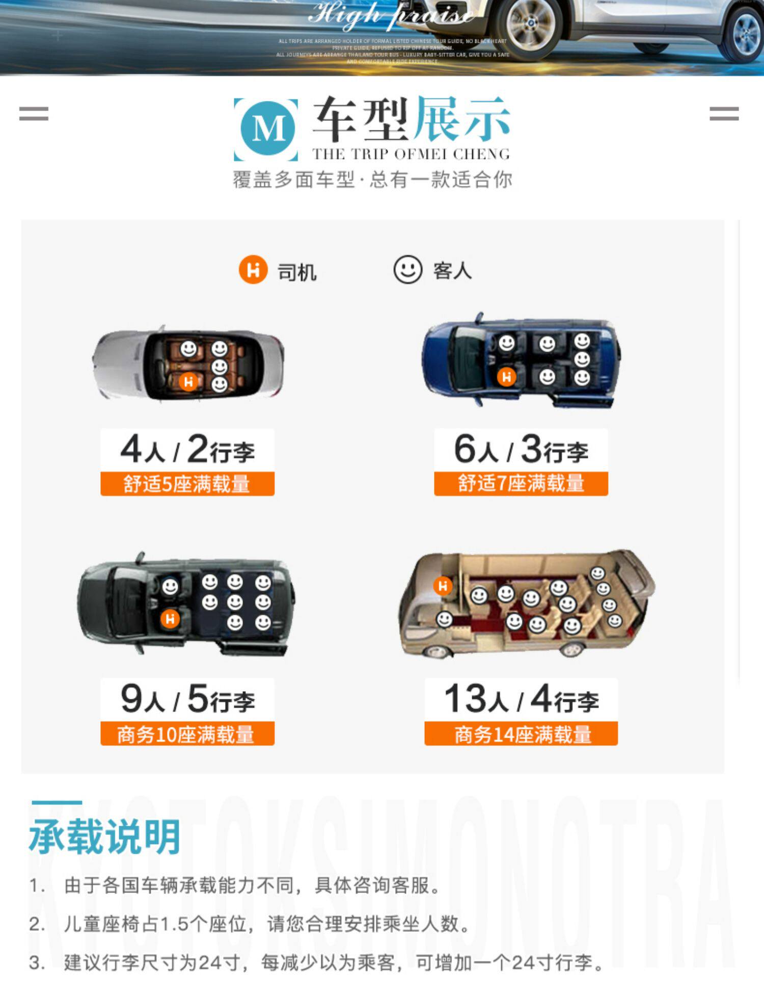| Модельный уровень: | Удобно 5 мест (3 человека и 2 багажа), 7 мест (4 человека и 4 багажа) |