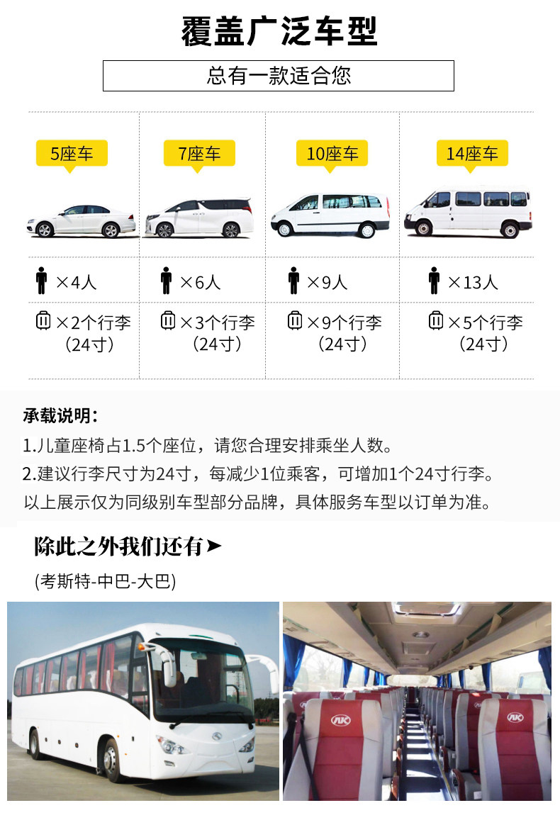 | Модельный уровень: | Пять мест (4 человека, 2 штука из 24 -дюймового багажа), 7 роскошь 7 (6 человек, 4 штуки из 24 -дюймового багажа), 10 бизнес (9 человек, 9 кусочков из 24 -Inch Bagge), Удобно 7 сидений (6 человек, 4 штуки 24 дюйма багажа) 6 человек, 4 штуки 24 дюйма багажа, Китай Пакистан 10-15 (13 человек 7 штук 24-дюймового багажа) |