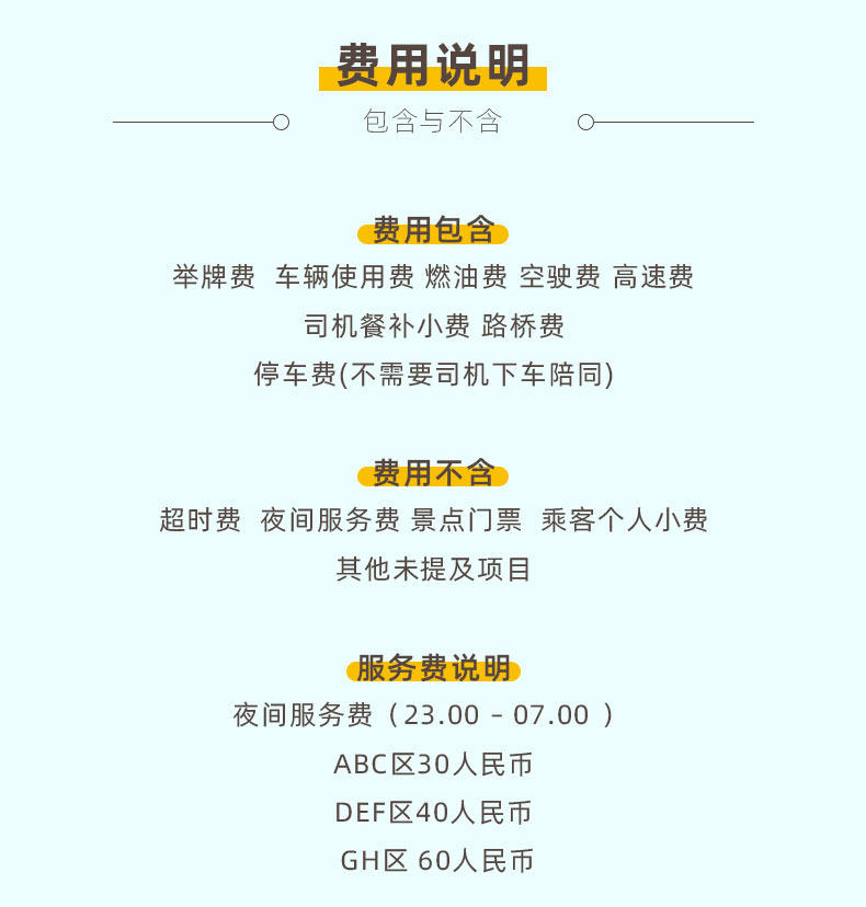2. Время обслуживания: 7:00-22:00. Фактическое время использования автомобиля указано в пакете бронирования. Если время обслуживания превышает время обслуживания, будет рассчитана плата за сверхурочную работу забронированной модели автомобиля.