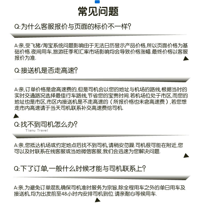 6. Если водителю необходимо держать табличку, чтобы встретить людей в аэропорту, помочь с регистрацией в отеле или выездом из отеля, а также купить, получить билеты, различные карты и т. д., взимается дополнительная плата за дополнительные услуги.