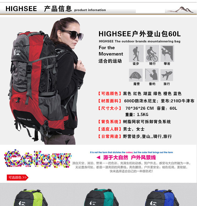 Дорожный вместительный и большой рюкзак, сумка для путешествий, снаряжение для путешествий подходит для пеших прогулок, дождевик, надевается на плечо