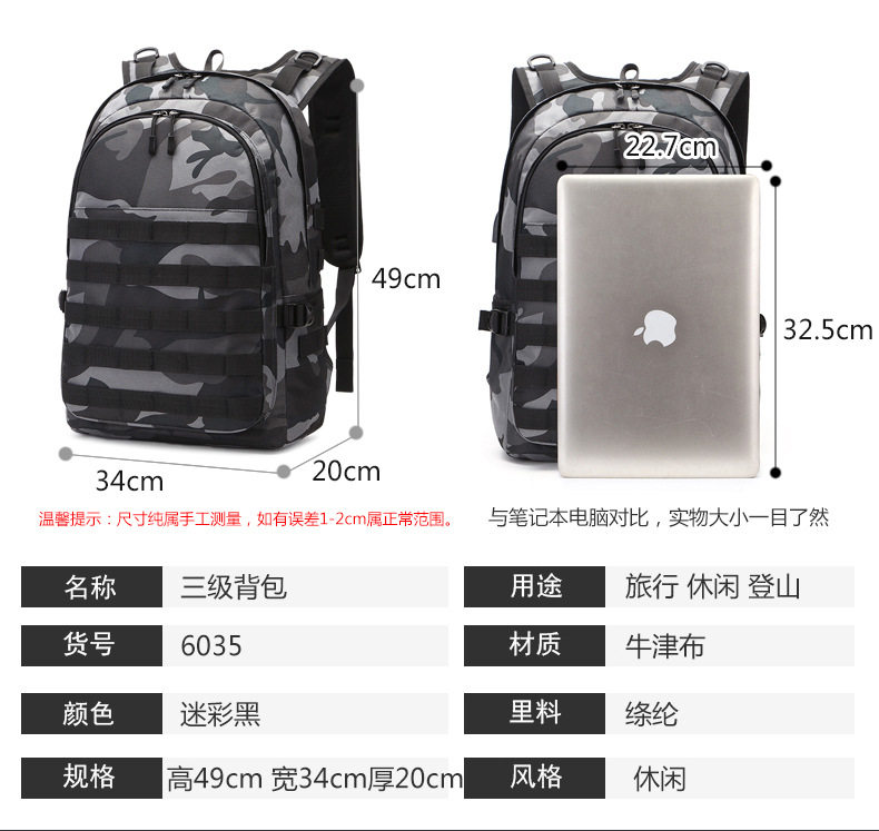 PUBG Уровень 3 Пакет того же куриного рюкзака для мужчин с большими плечами, камуфляжная книга с большими возможностями для учащихся средней школы и начальных классов для младших школ и начальных школ