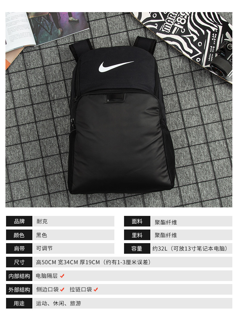 Nike, школьный рюкзак для школьников и студентов, вместительная и большая сумка через плечо, трендовая спортивная сумка, ноутбук, для средней школы