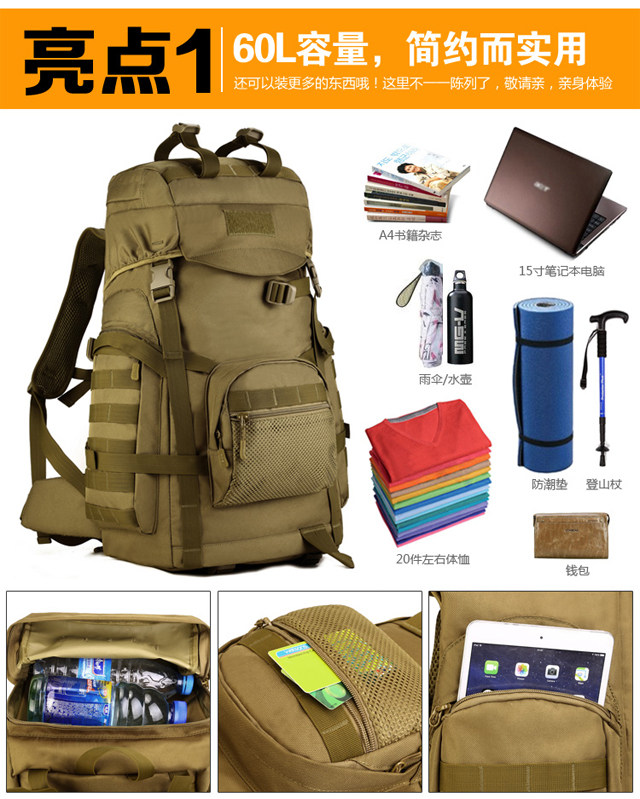 Вместительный и большой камуфляжный универсальный рюкзак подходит для пеших прогулок