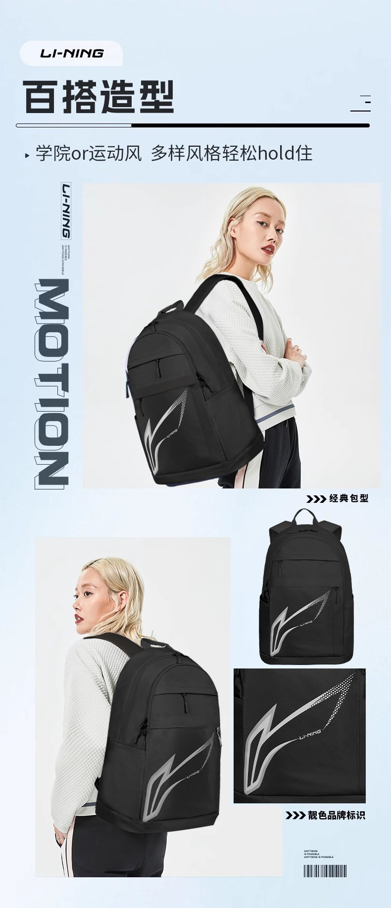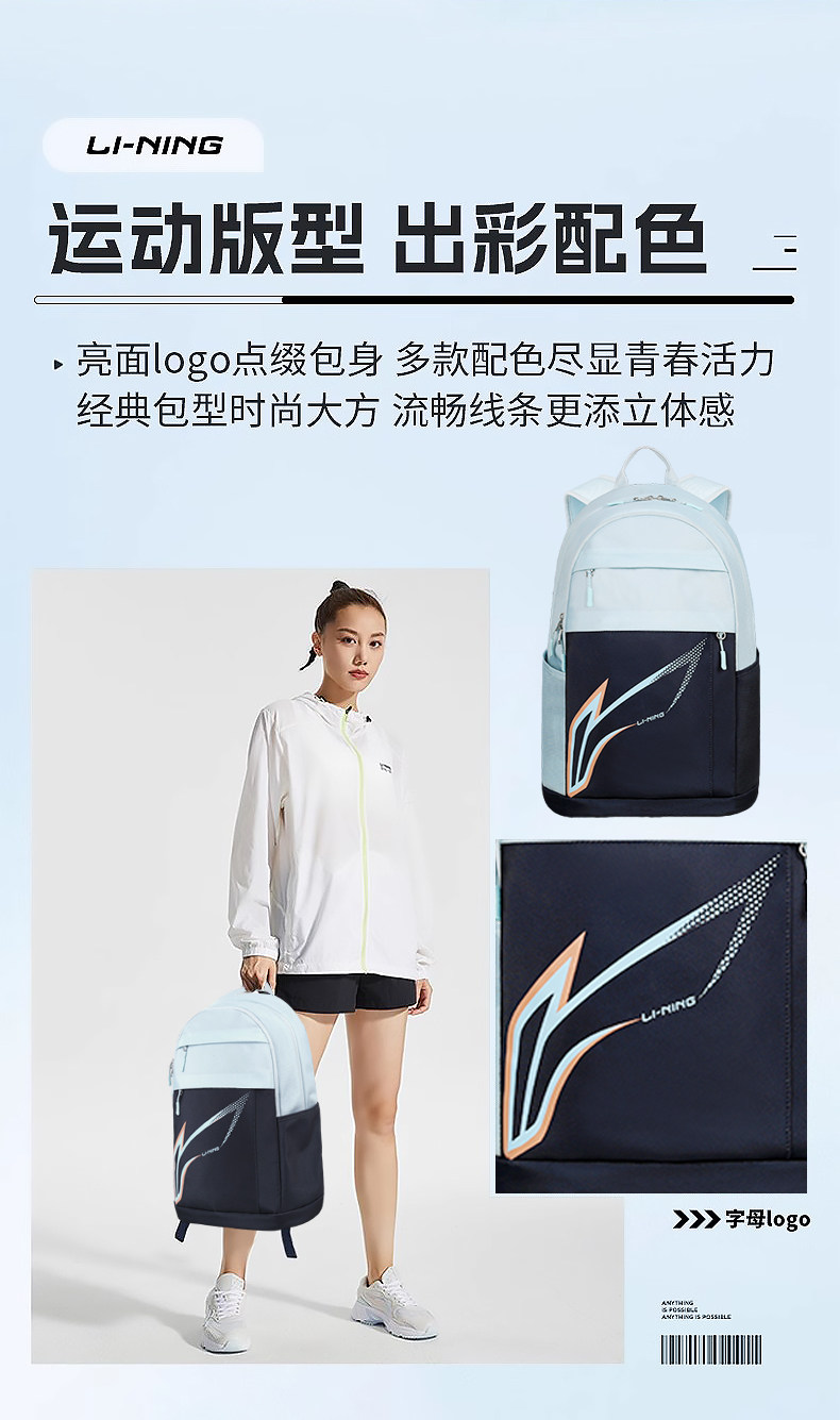 Li Ning, дорожный спортивный школьный рюкзак, вместительная и большая баскетбольная сумка через плечо, для средней школы, подходит для подростков, подходит для студента