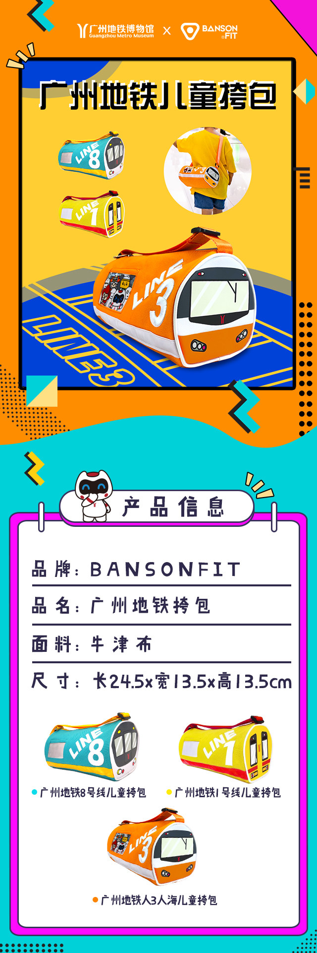 Bansonfit Guangzhou Metro Cultural and Creative Sags Детские взрослые сумки кроссбак.