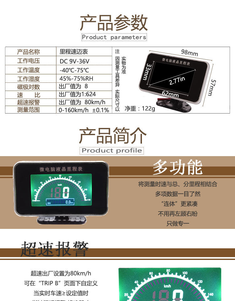 Автомобильный ЖК -пробег таблица пробега с скоростью скорости на милях Электроника и инструмент модификации контейнера транспортных средств скорости скорости