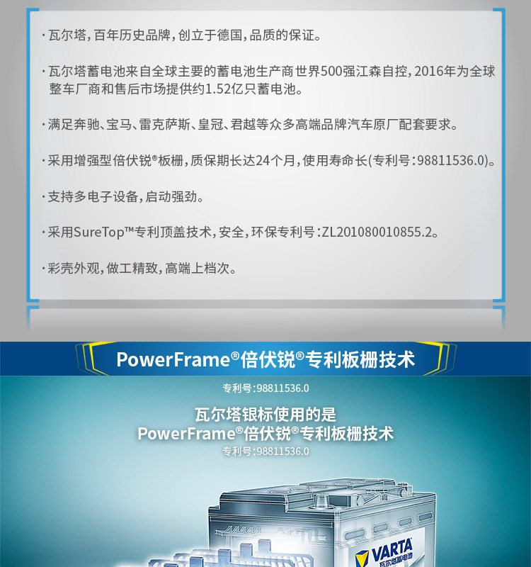 Батарея Valta Battery Silver Standard 82-20 A4LA6LC Class E-Class GLKGLC S60XC80S90 Discover 2 Range Rover
