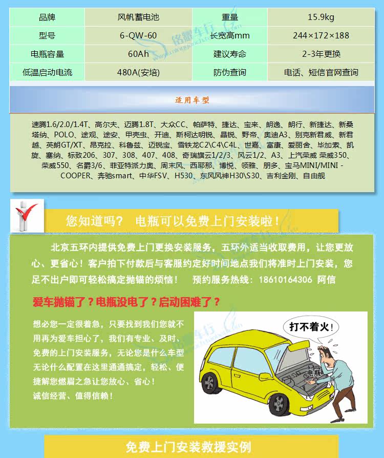 Парусная батарея 60AH адаптируется к Синюн Вейджун Юэйю Корустез Смарт Peugeot 307/206 Lao Yinglang