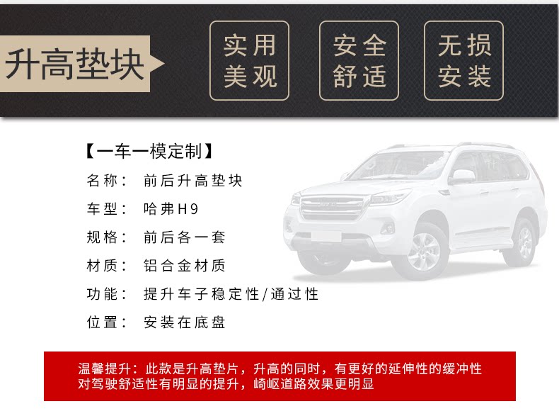 Модификация H9 Великой стены увеличивает 2 -дюймовые кубики, амортизационное поглощение и высота, укрытие удара для увеличения модификации комплекта фланца