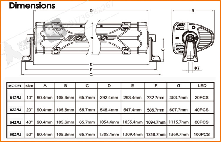 Сила: 10 -INCH Single Light Bar 12V40W  10 -INCH Double Light Bar 12V54W 20-дюймовая одинарная световая панель, 12 В, 80 Вт  20 -INCH Double Light Bar 12V117W