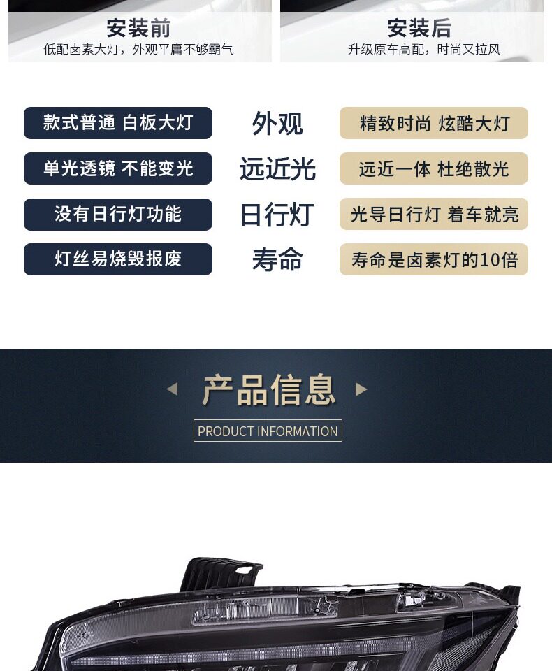 Посвященная в Honda Ten Generation Civic Полное светодиодное светодиодное источник света.