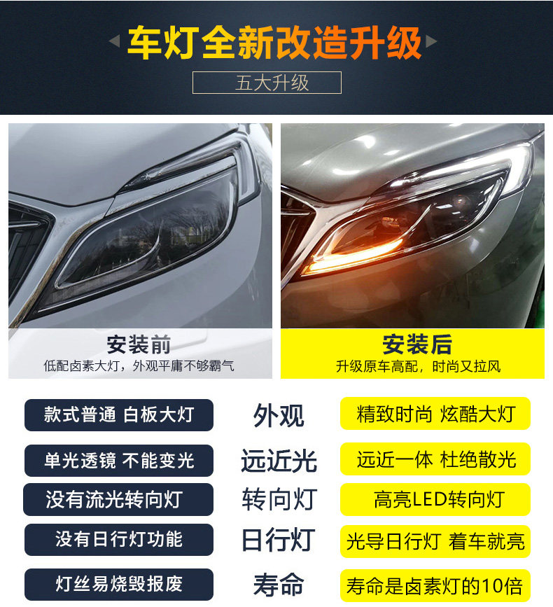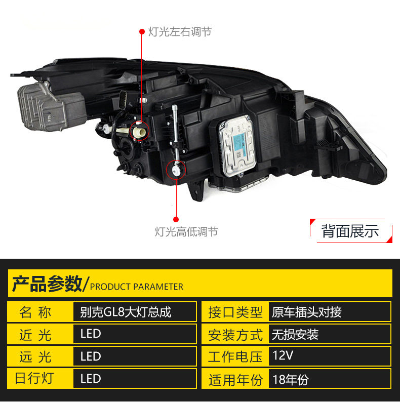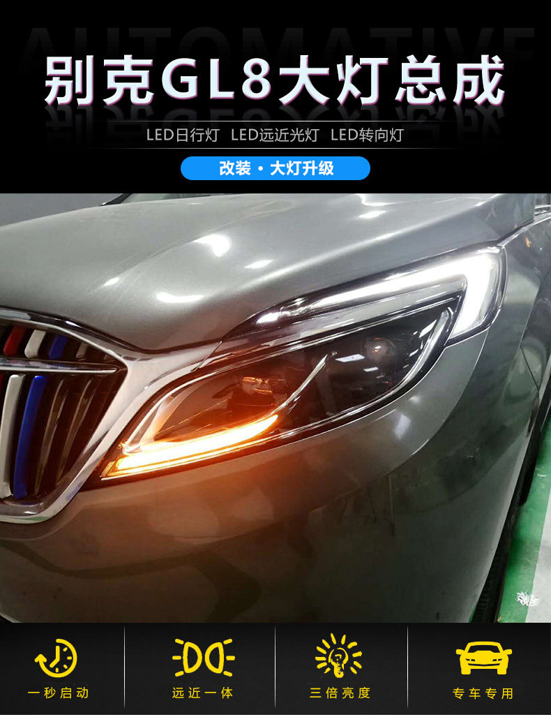 - Оригинальные фары/фары Buick GL8 (полностью светодиодный источник света/откидное рулевое управление), один цвет/пара