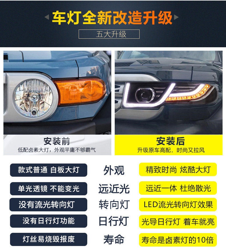 07-13 FJ Cool Road Ze Big Lights Сборка модифицированная двойная световая корпус Cymblymal Big Light Led Light Поверните в Fearon Lantern