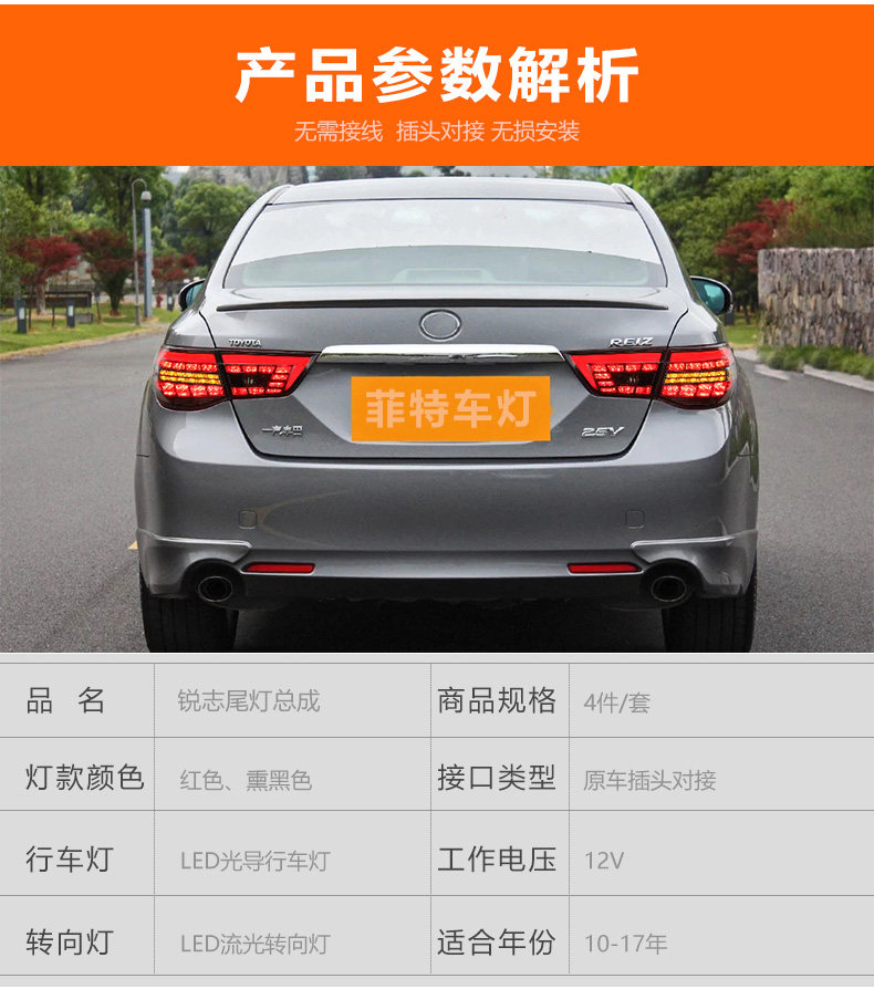 Подходит для 10-17 Toyota Ruizhi Tail Lights Modification Mercedes-Benz светодиод, проходящий через заднюю лошадь