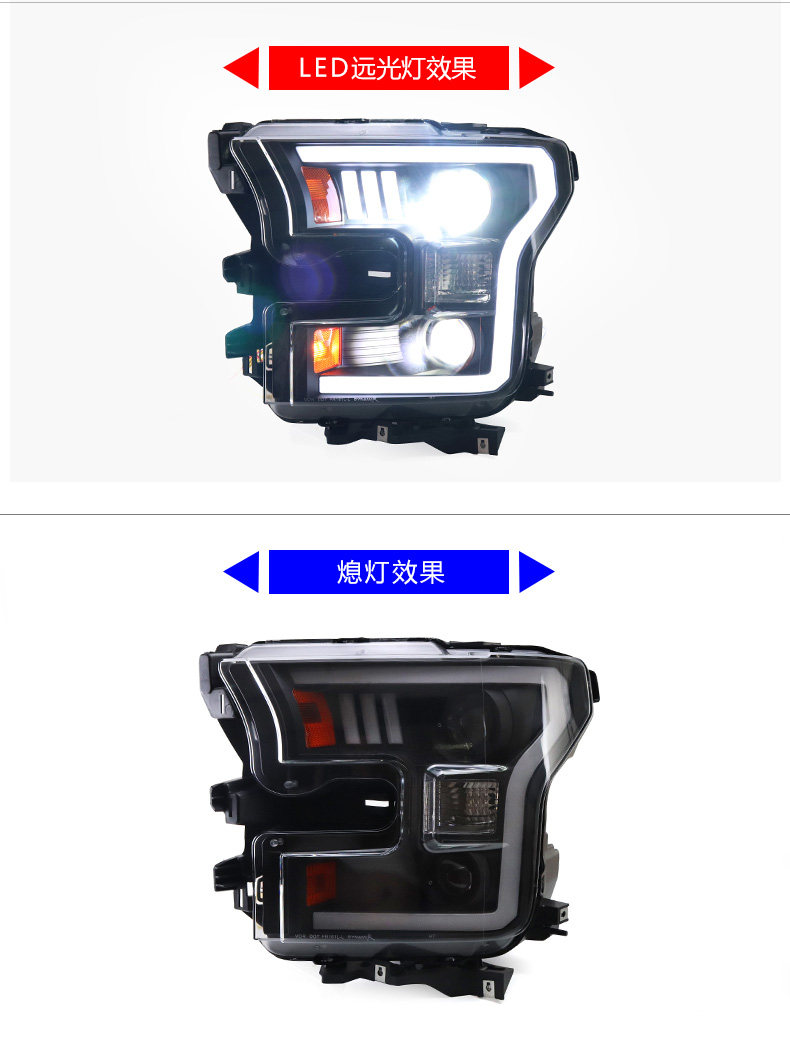 - Пара стандартных американских фар Bull Demon King версии 15-17 F150 в сборе (ксенон дальнего света + светодиод дальнего света)