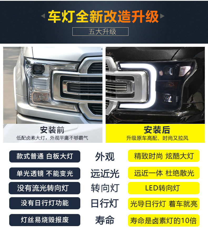 Подходит для сборки фар Ford Raptor F150, чтобы изменить светодиодные световые фонари на светодиодные фар
