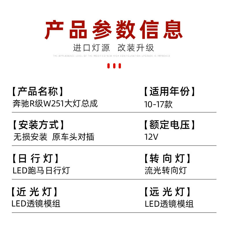 Подходит для 10-17 Mercedes-Benz R-Class F251 Furights Узел для модификации светодиодных линейных линейных ламп.