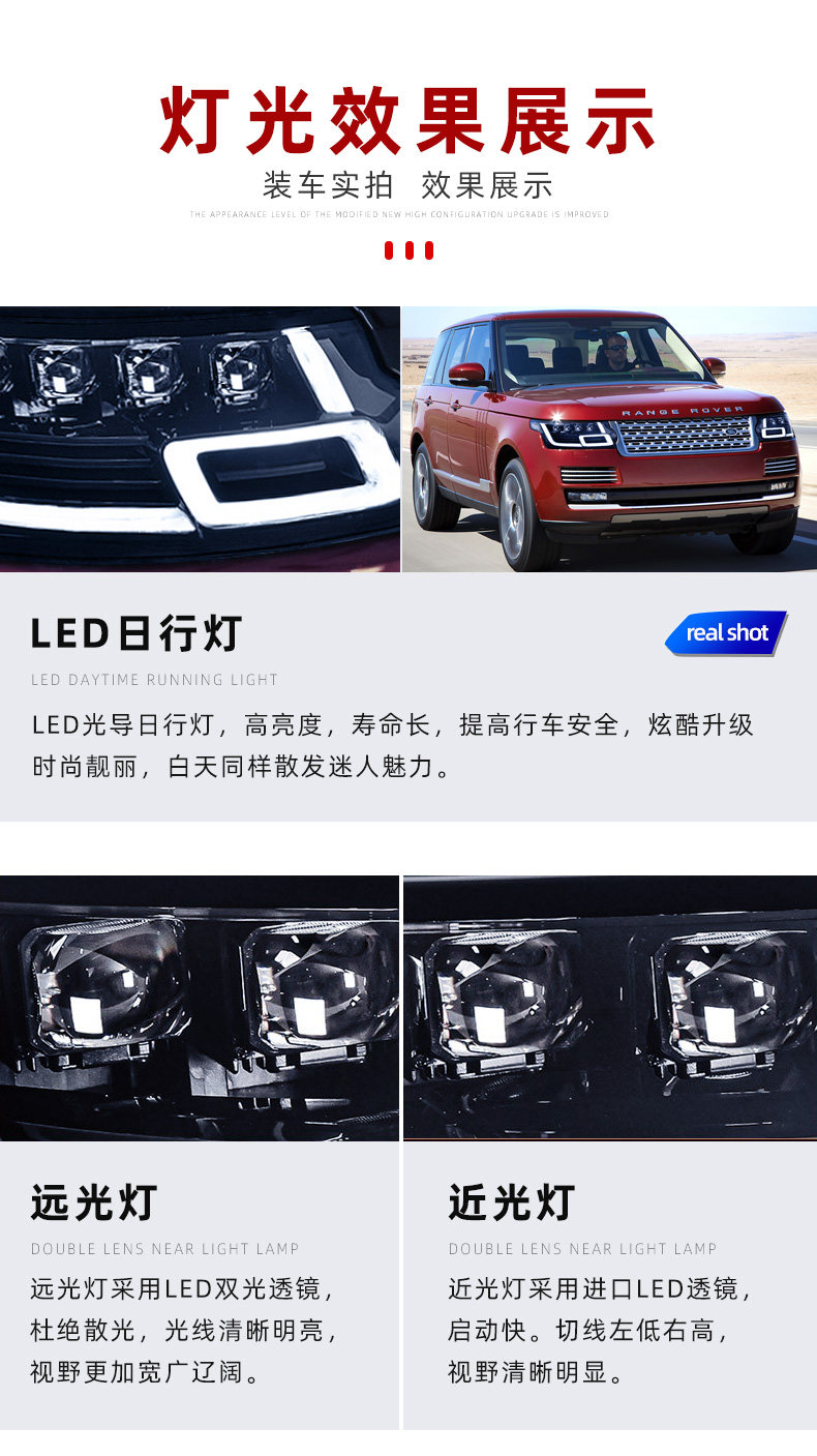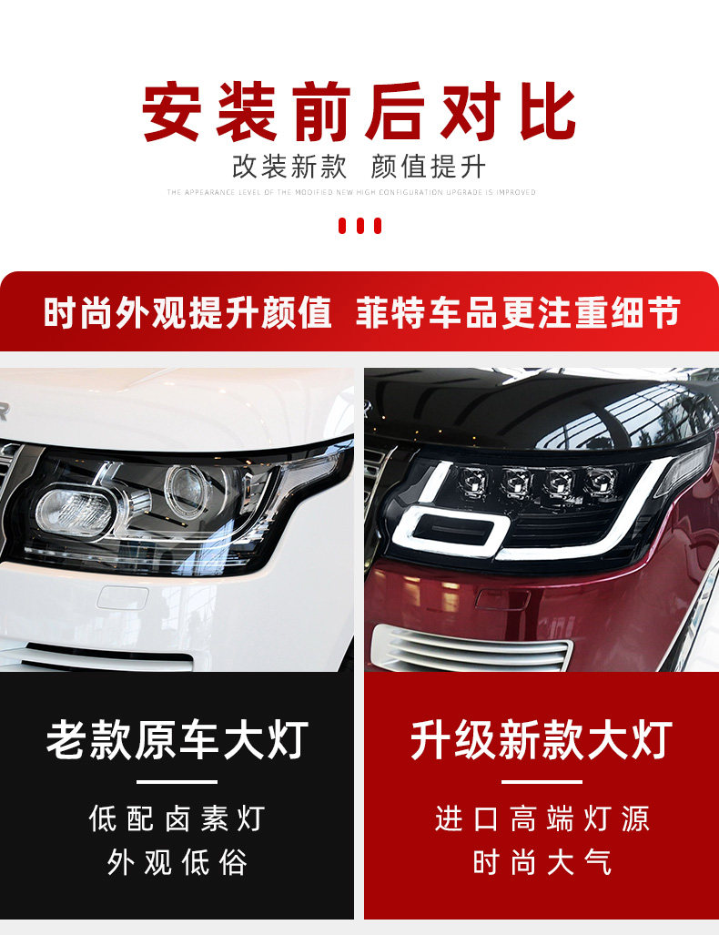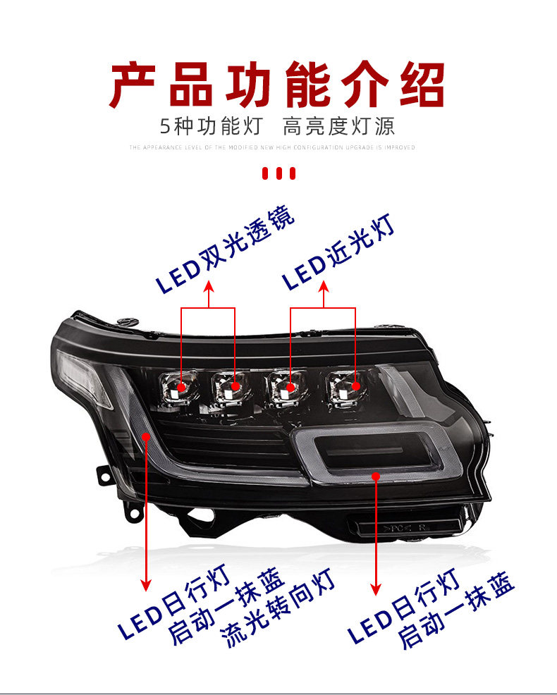 Применимо к 13-18 Land Rover Range Rover Административная модификация большого светодиодного светодиодного линза и водяного рулевого управления