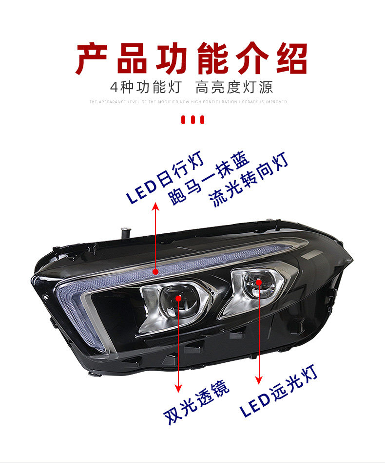 Применимо к 19-22 фарах Mercedes-Benz A-класса модифицированные светодиодные лошадь, безудержный день.