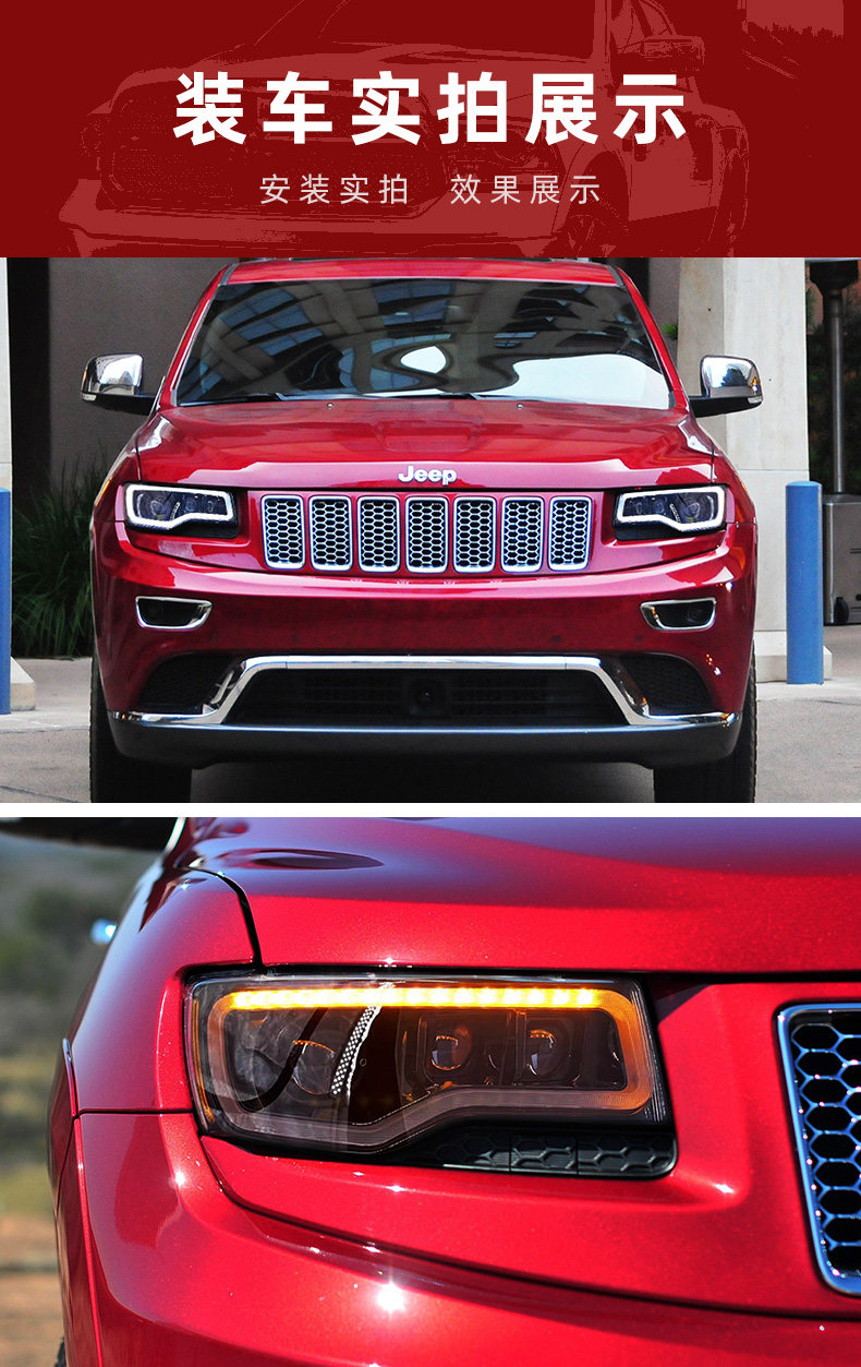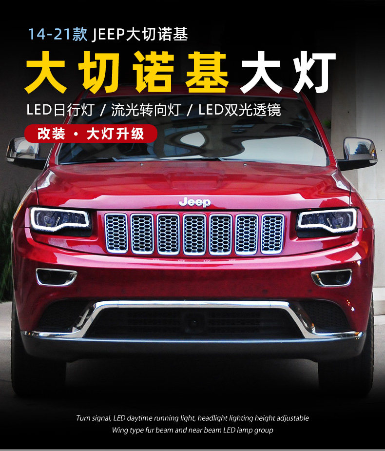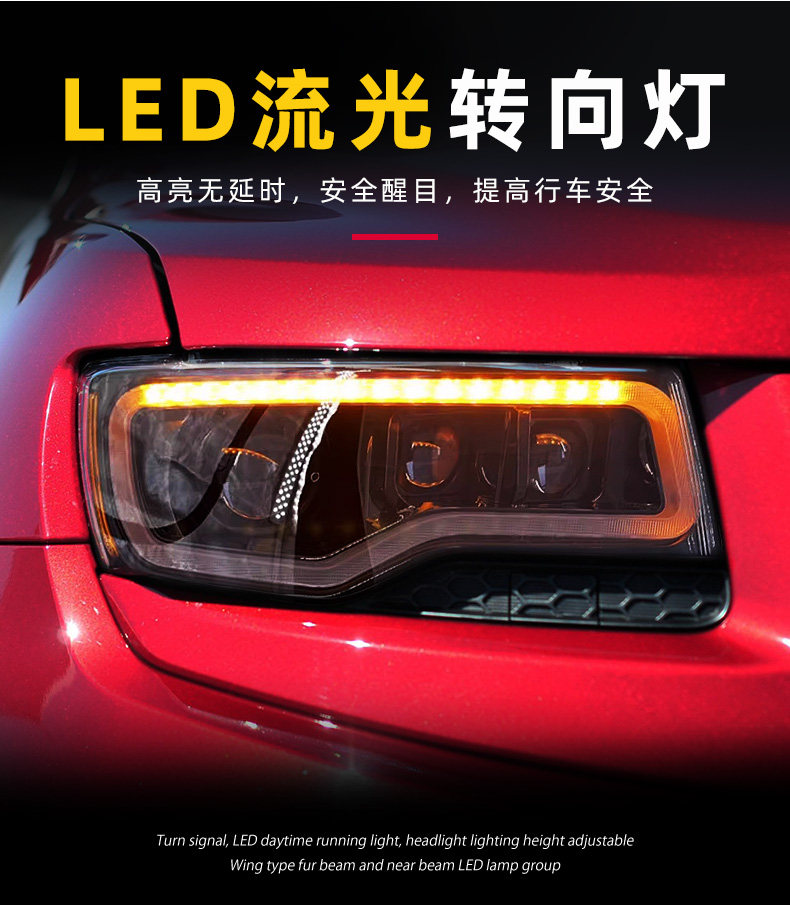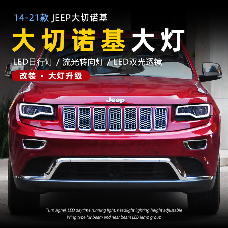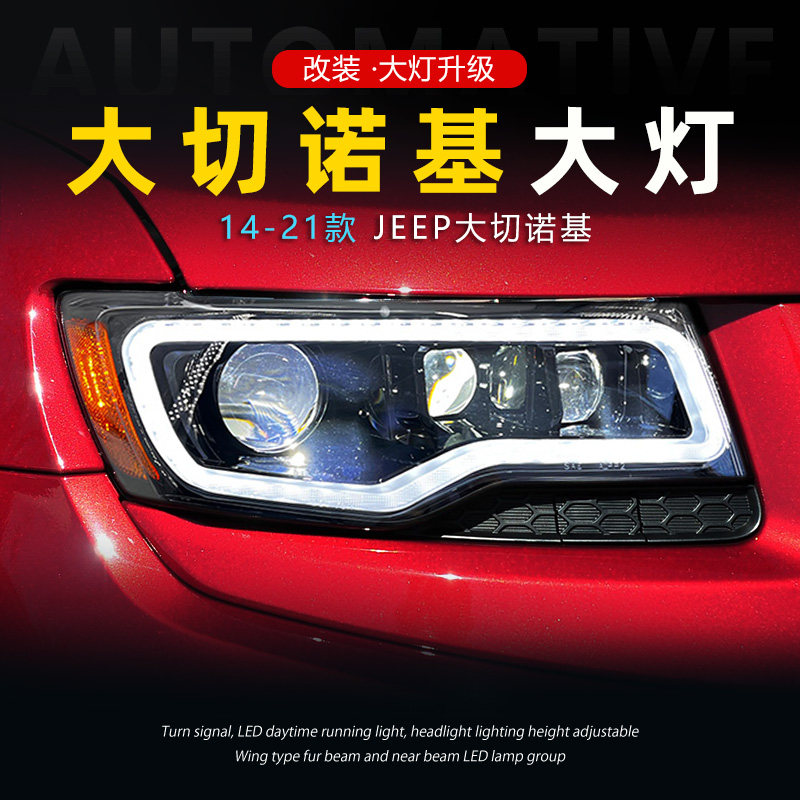 Подходит для 14-21 Jeep Barge Cherokee Большой фары в сборе, чтобы изменить светодиодные линейные линейные лампы вода.