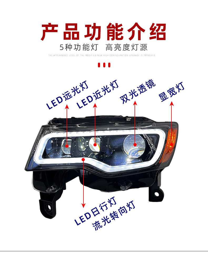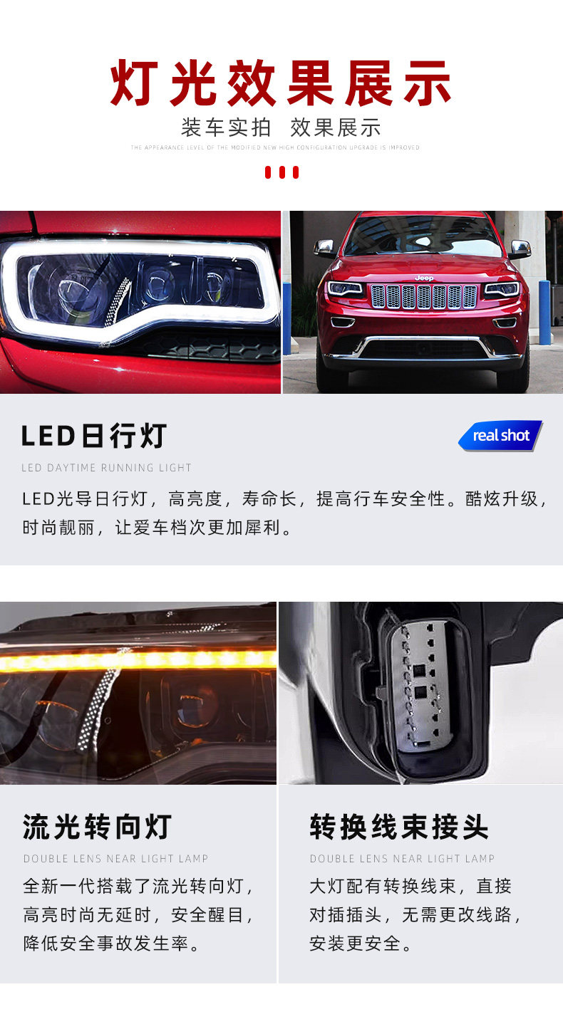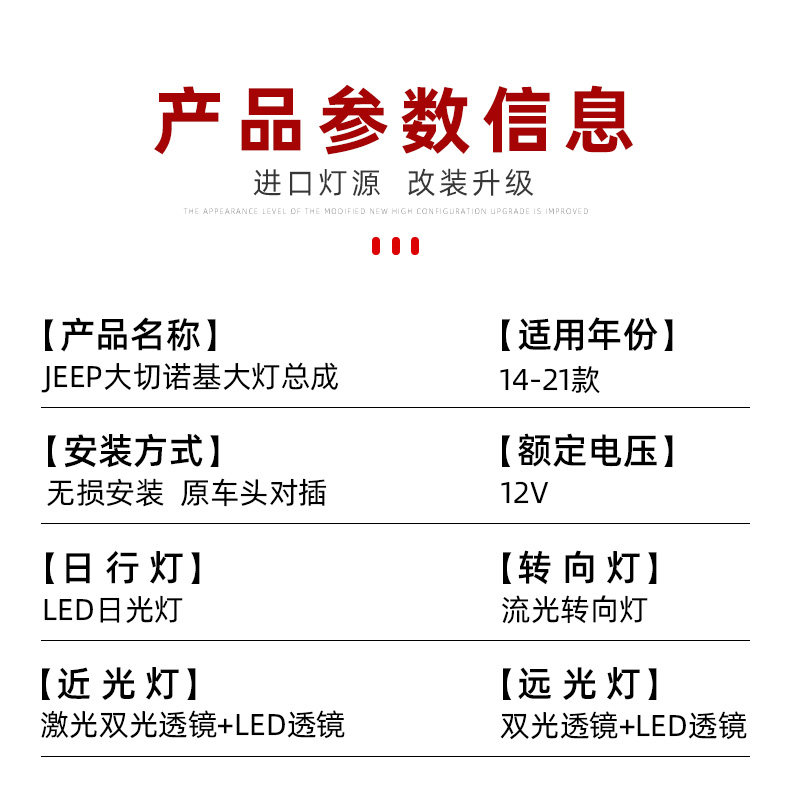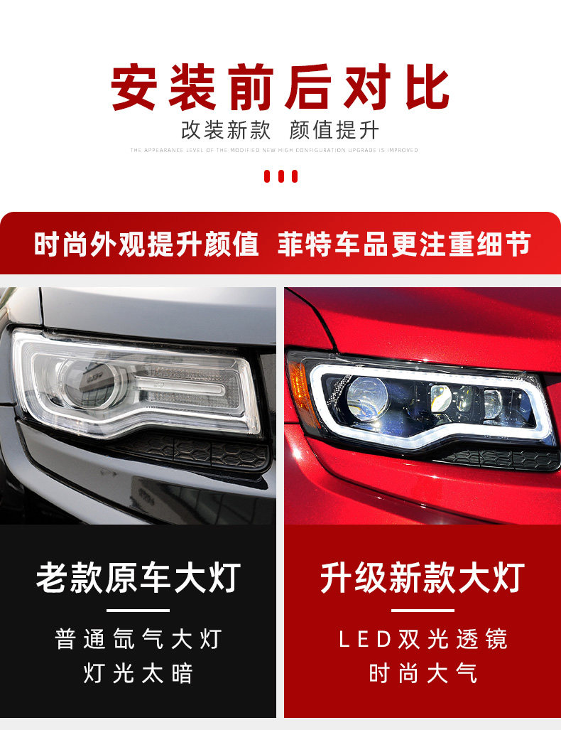 Подходит для 14-21 Jeep Barge Cherokee Большой фары в сборе, чтобы изменить светодиодные линейные линейные лампы вода.