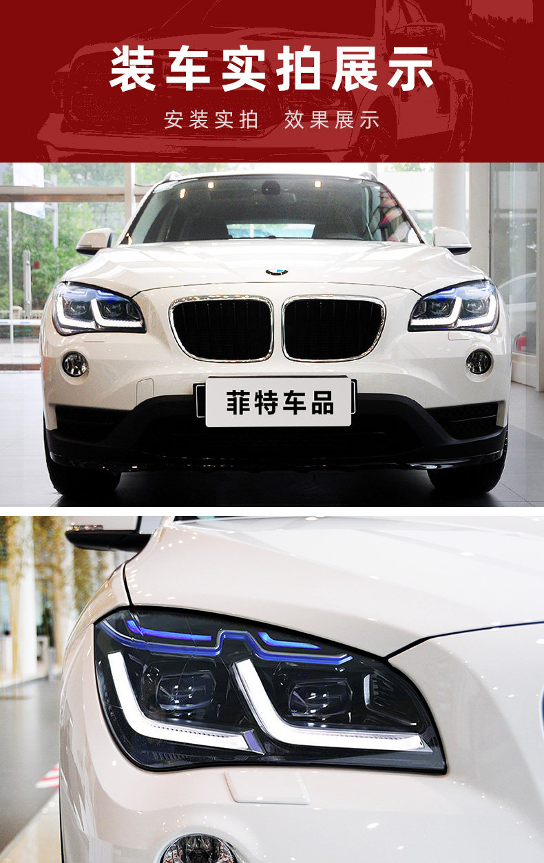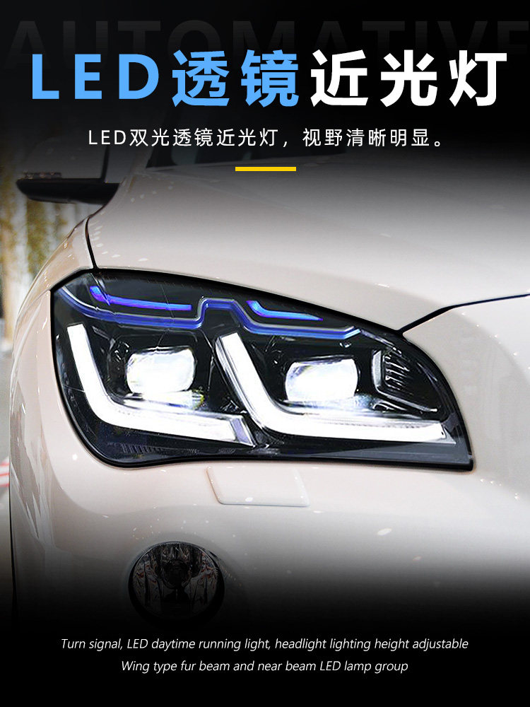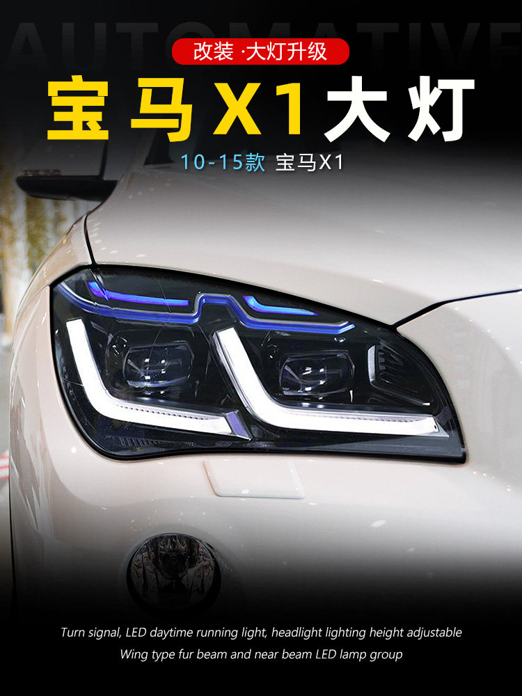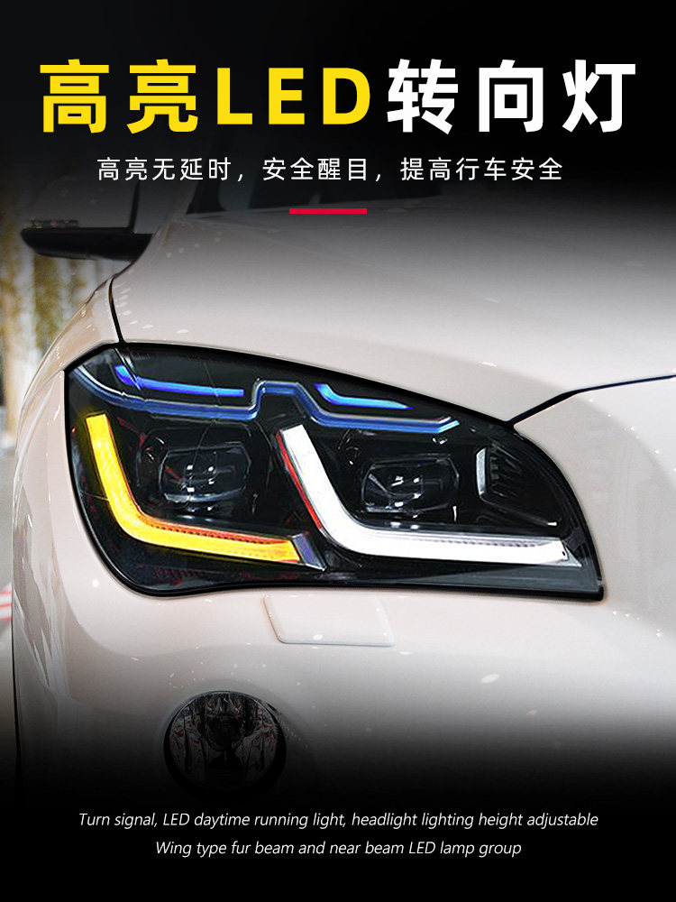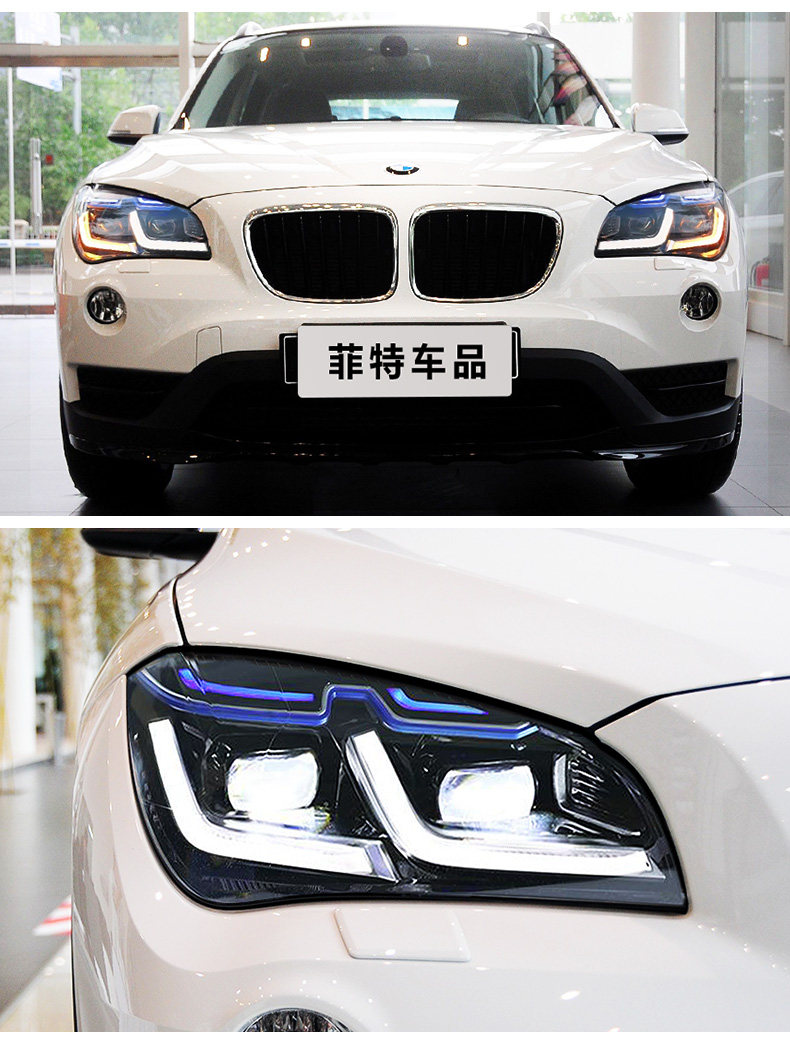 Подходит для 10-15 BMW X1 Фара Узел E84 Модифицированная светодиодная линза Голубая линия бровей Line Light Lamp