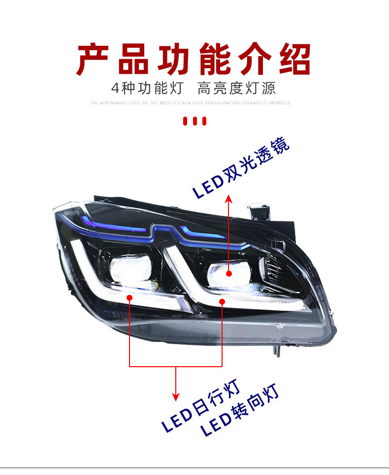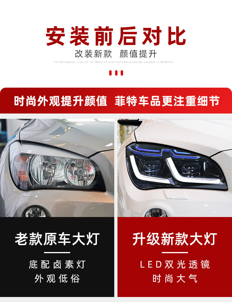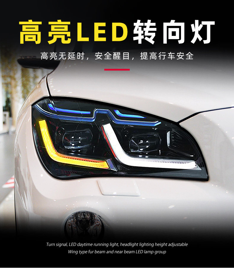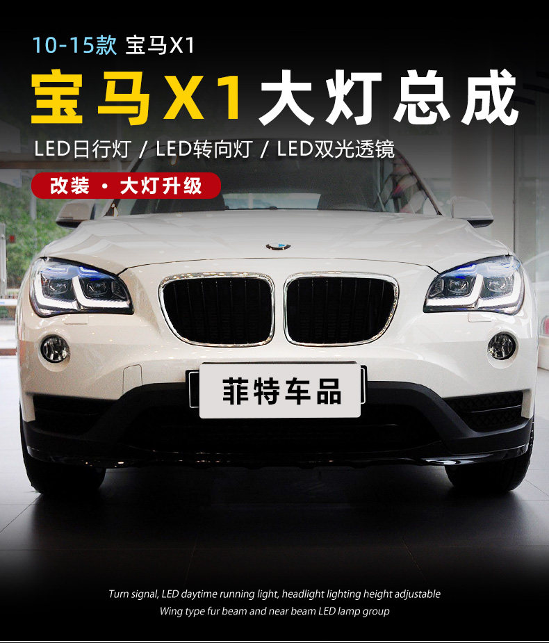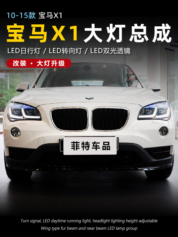 Подходит для 10-15 BMW X1 Фара Узел E84 Модифицированная светодиодная линза Голубая линия бровей Line Light Lamp